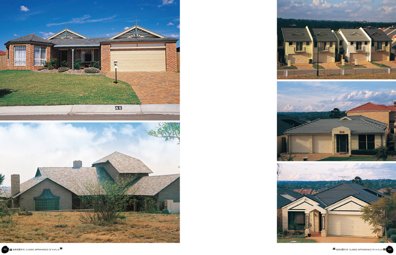本书收录了国外和国内的别墅图样约800例,除多角度外观图的直接展示外,有些还配附了各楼层的平面设计图,希望尽量给读者展示一个较为完整的效果。这些别墅实例,既有简洁大气、集各种建筑精华于一身的北美风格别墅,又有尽显豪华、富有古典神韵的欧洲风格别墅,也有外观色彩亮丽、造型美观的澳大利亚风格别墅,还有体现中西文化结合的本土别墅等。