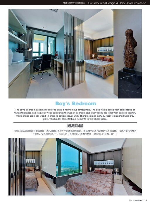 本书围绕软装元素的风格表达,从室内设计的立意、构思,到室内风格和环境氛围的创造,注重对环境整体、文化特征以及建筑物的功能特点等多方面的考虑,带领读者,随着生活情感体现的主线,领略最新室内设计的深度和魅力——如何运用洗练的设计语汇,如何搭配极具质感的材质,如何运用沉稳优雅的色调,如何形塑空间的大气感。