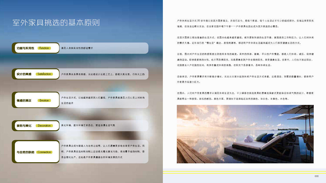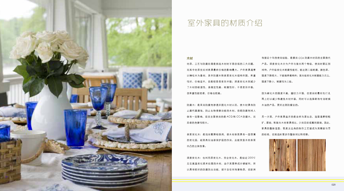 2.精准文字搭配高清图片的方式,讲解室外家具搭配的历史、分类、材质、保养等,使读者对主题有更全面和深入的认识。