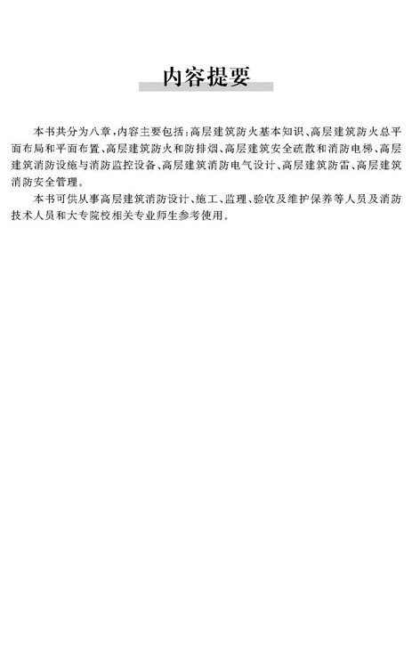 本书可供从事高层建筑消防设计、施工、监理、验收及维护保养等人员及消防技术人员和大专院校相关专业师生参考使用。