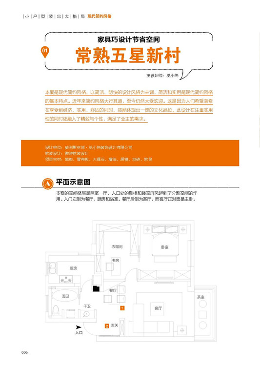 本书将通过精选的22个设计案例,为读者详细地解说现代简约风格的室内设计。每个设计案例都会包含平面图与设计案例完成后的实景图,并且对实景图中的设计材料进行了专业说明。这样对业主来说更直观、全面,也可以成为一本拿在手里的装修宝典。作者从功能要求、空间布局、颜色搭配、材料选择以及氛围的营造等方面入手,针对每个案例进行了图文并茂的详解。这些风格迥异的案例,不仅能使读者了解现代设计师对小空间的美学营造以及设计巧思,而且还能使其掌握设计的发展动向与潮流。通过不同案例剖析现代简约风格设计理念与方法不但能使空间得到最大化的利用而且还能带来视觉上的享受,这也就是人性化的实用设计。详尽、专业、全面又有针对性的小户型风格设计案例,是这本书的最大亮点。