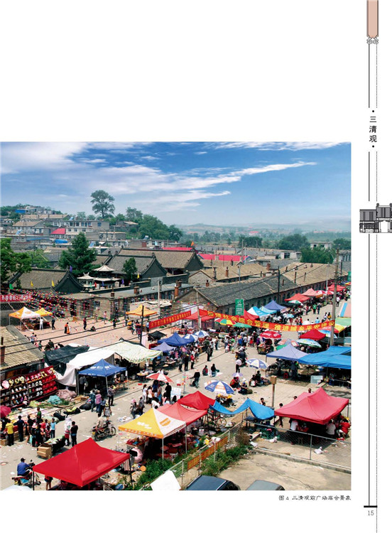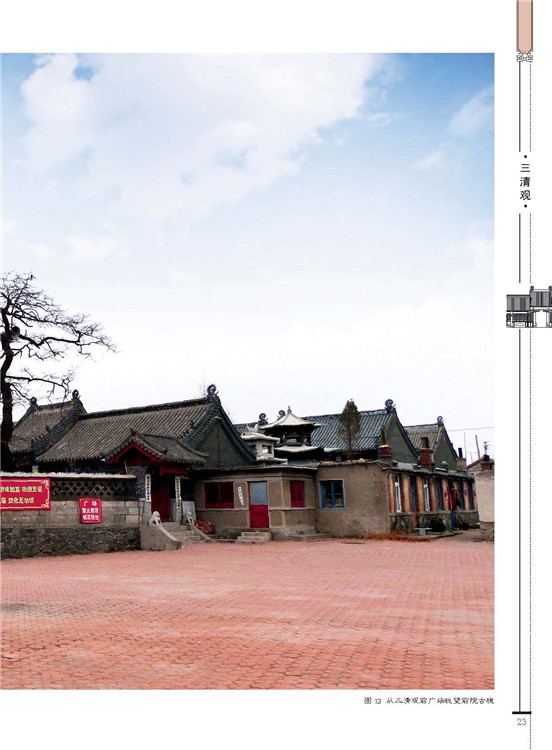 三清观毗邻城子坦镇的春满街。春满街北面有一片海滩,往前不远处就是碧流河汇入黄海的入海口,涨潮时,这里流动的是海水,退潮时就是河水。春满街(图 1)旧称鱼市街,是一条融合着辽南和胶东传统民居特点的老街,至今仍保留着清末民初当地民居的建筑风格与空间布局,是辽宁地区目前保存最为完好,具有鲜明的历史特色、浓郁的文化风情和较高的艺术价值的街区。