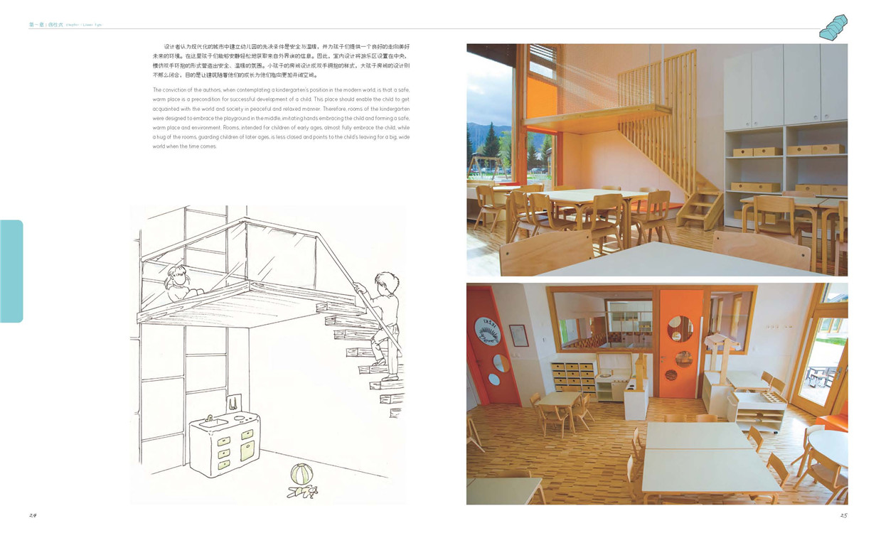 良好的学前教育不仅为人的发展奠定良好的基础,还有利于提高义务教育质量,促进社会和谐稳定发展。幼儿园不仅仅要照顾儿童的身体,还要承担起促进儿童发展、培养儿童个性的重任,使孩子将来能适应变化的社会。在这种状况下,对幼儿园建筑也会提出新的要求。因此,现代幼儿园建筑设计要想方设法创造一些趣味空间,对于那些边边角角的公共辅助空间,可以通过一些新奇的设计手法获得意想不到的空间效果。本书从幼儿园建造的选址、不同教育模式的幼儿园建筑形态、幼儿园建筑的新趋势等方面,以及近年出现的作品,来分析建筑师对这一问题的思考,其中的一些设计新趋势颇值得借鉴。