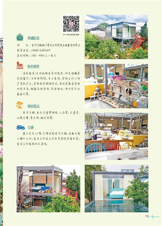 精心甄选35家民宿案例,遍布大江南北,风格迥异,各具特色。每个案例都有介绍民宿老板的个人经历、感受,谈及心中最美的情怀。每个案例中都有路线、周边景点推荐,民宿详细的介绍及价格说明。还有二维码推荐,感兴趣一扫即可了解、预定。