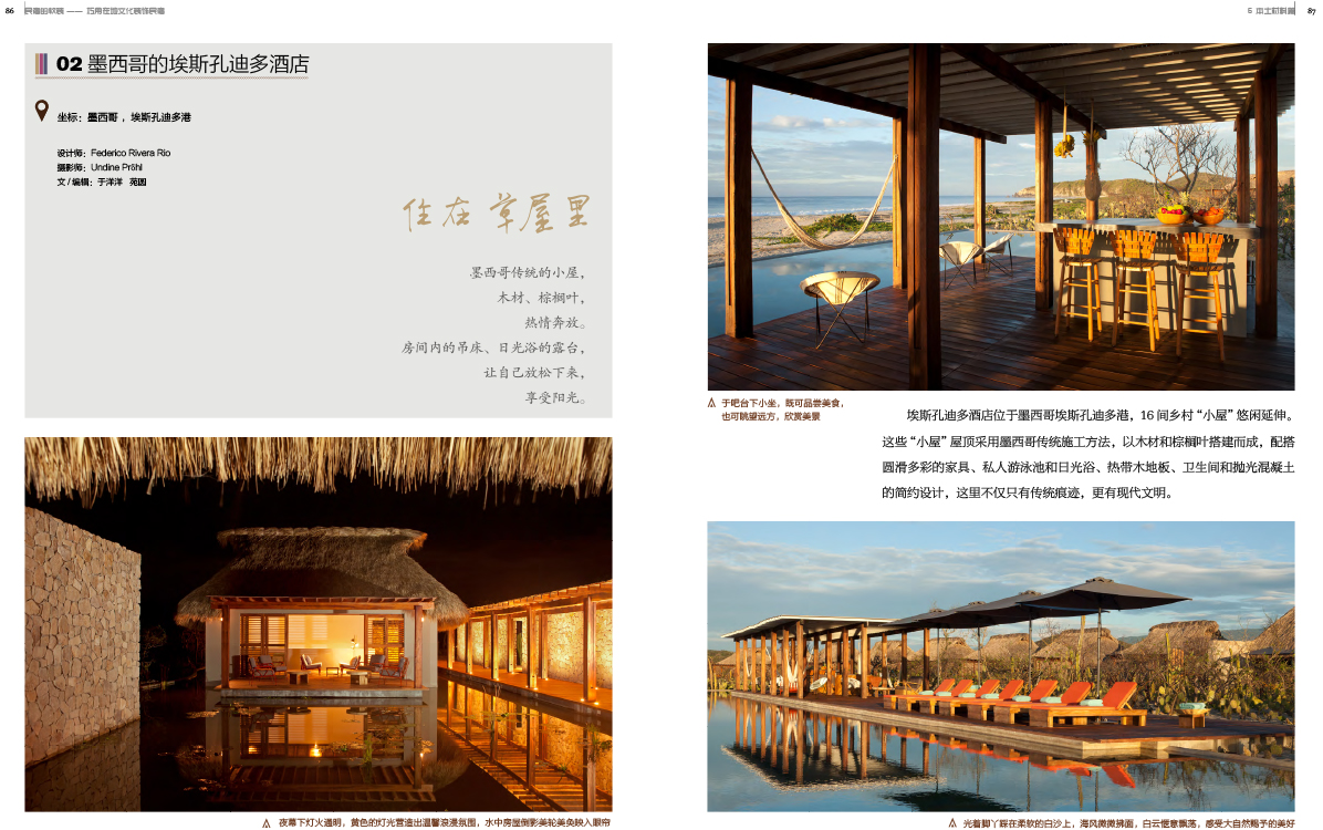 本书概述了民宿的起源、民宿的打造理念; 综述了民宿软装装饰的设计思路;利用室内设计奥斯卡的安德鲁·马丁奖的获奖案例,展示了那些世界各地最新的“利用在地资源,打造出特色室内风格”的手法。接下来又分八个章节介绍了民宿中“在地资源”的应用:特殊的地形或动植物景观、少数民族风情或古村聚落、遗留的工厂或博物馆、当地特色物产……这些人文、自然或历史资源,或成为主题,或作为建筑材料和装饰材料,贯穿应用到民宿打造的始末。