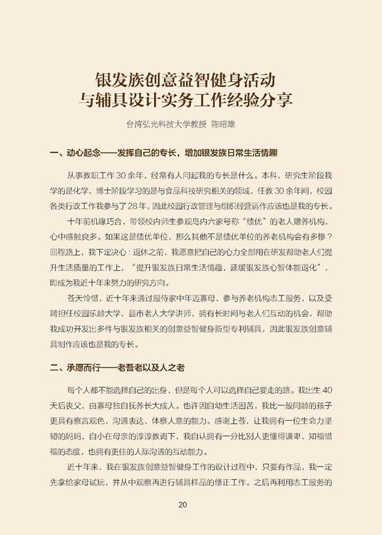 银发族创意益智健身活动与辅具设计实务工作经验分享