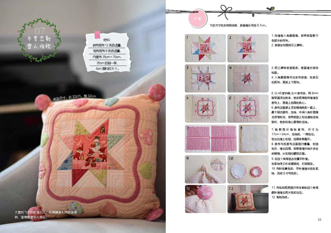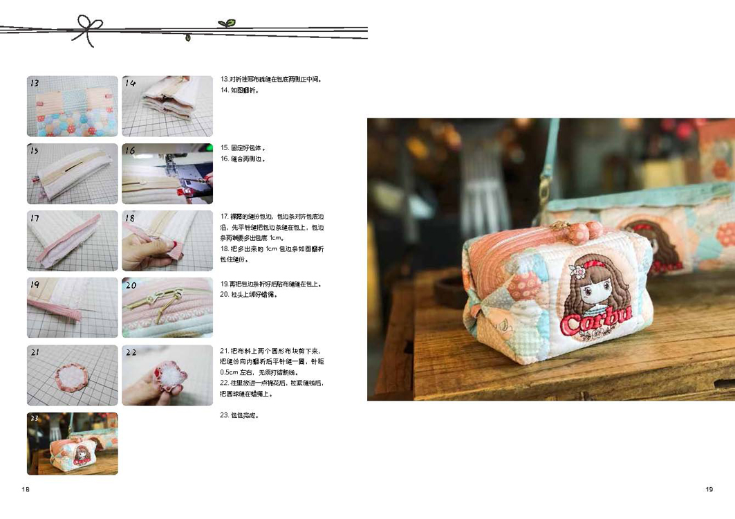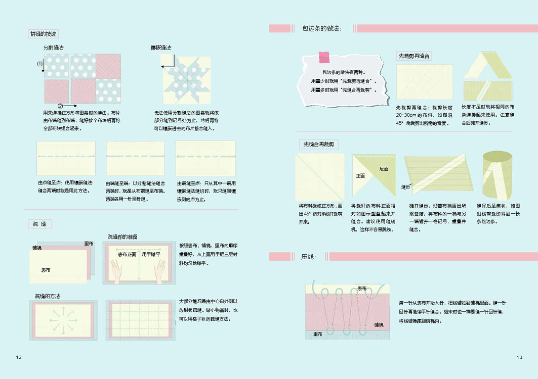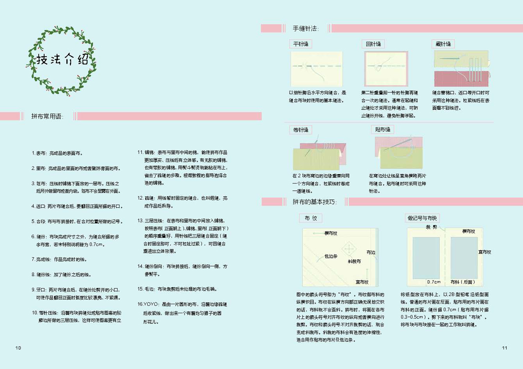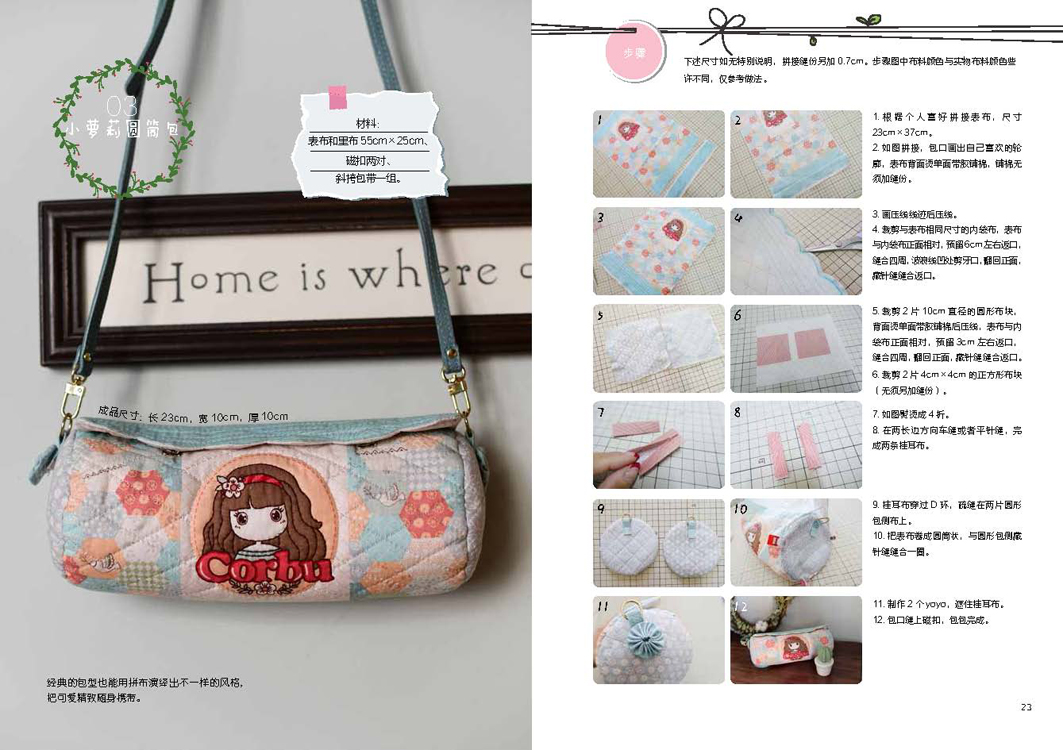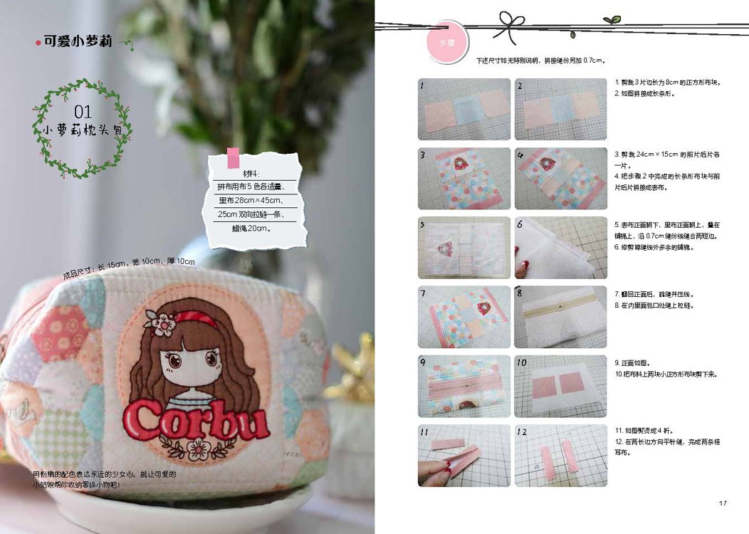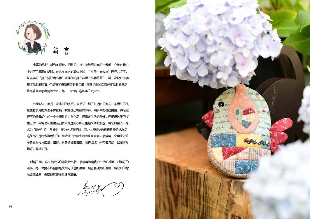 本书详细介绍了拼布的基础知识以及多种风格和用途的拼布作品的缝制过程,包括拼布和缝纫的基础针法图示和讲解,图文并茂地展示了手作拼布作品的每一个步骤,并随书附赠与实物等比例的大纸型以及相应案例的视频教程链接,让缝纫零基础的人也能轻松入门,掌握拼布技巧并制作出自己的作品。