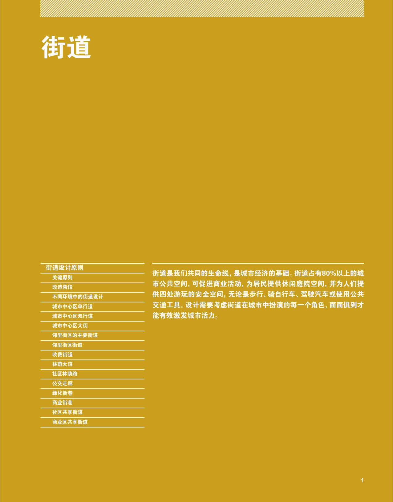 《城市街道设计指南》概述了城市街道设计的各种原则,使街道安全而富有魅力,吸引人们在城市环境中步行、购物、停留以及驾驶,这些原则旨在创造真正为人所用的城市街道空间。