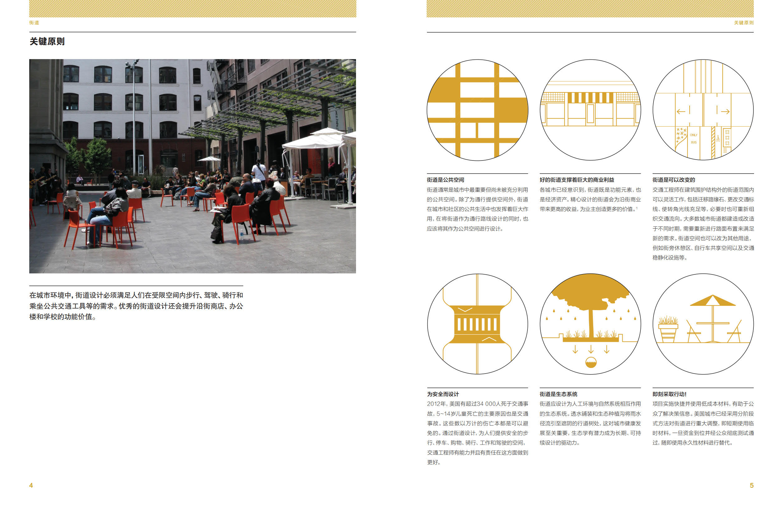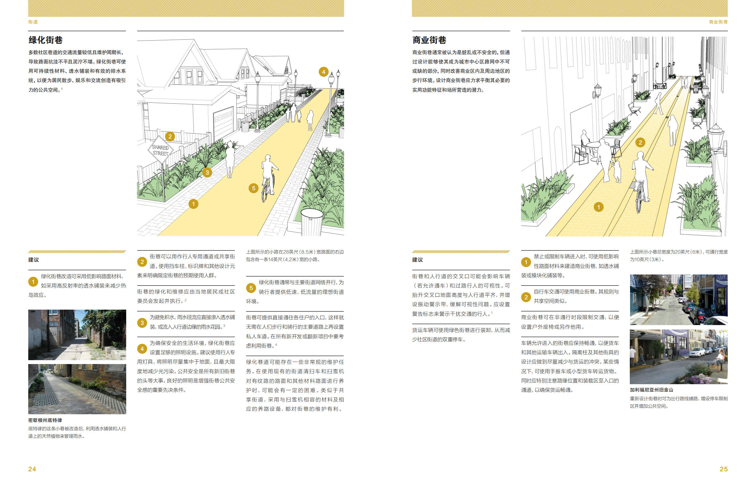 3. 《城市街道设计指南》侧重于城市街道和公共空间的设计。强调城市街道设计是一种独特的实践,具有自己的一套设计目标 、参数和工具,以围绕城市环境的特殊特征展开设计。