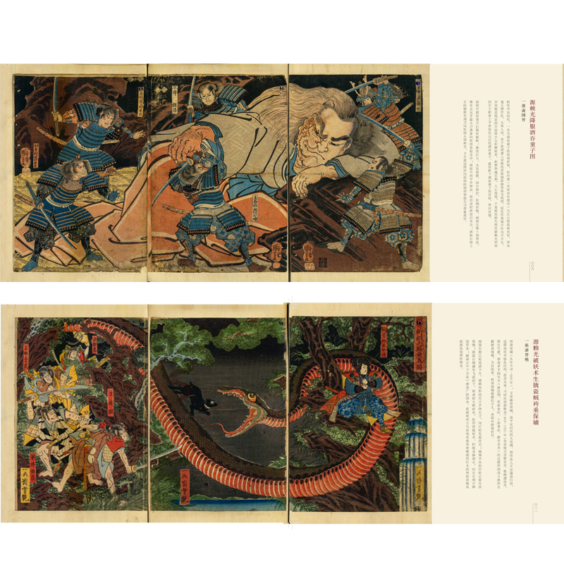 百鬼夜行里最为人所知的妖怪“酒吞童子”,大阴阳师安倍晴明的得意弟子“安倍泰成”,平安时代妖术高强的大盗贼袴垂保辅,率十九位大臣出征坛浦海战的源义经……歌川丰国、歌川国芳、月冈芳年等21名日本浮世绘大师取材于神话出云国大社八百万神,宇治川大合战、和田合战等著名战役,历时多年绘制而成。本书严选其中16幅画面,场面气势恢宏,构图及人物表现堪称经典。每幅图配以短小精悍的背景概说和画面描述,使欣赏更具知识性,阅读更具趣味性。