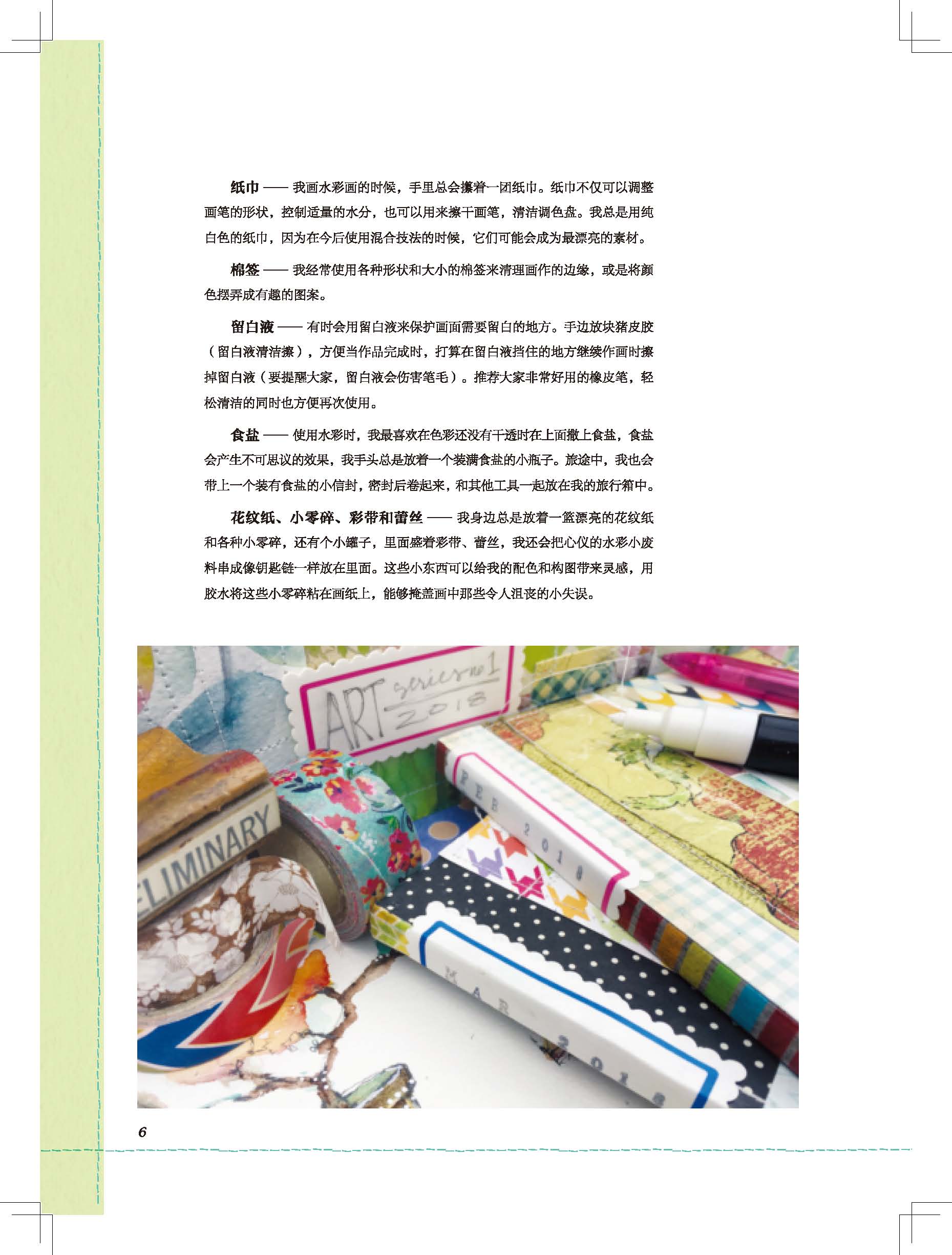 • 创意十足的技艺,帮助你充分利用水彩颜料的神秘特性来满足你对完美的追求;