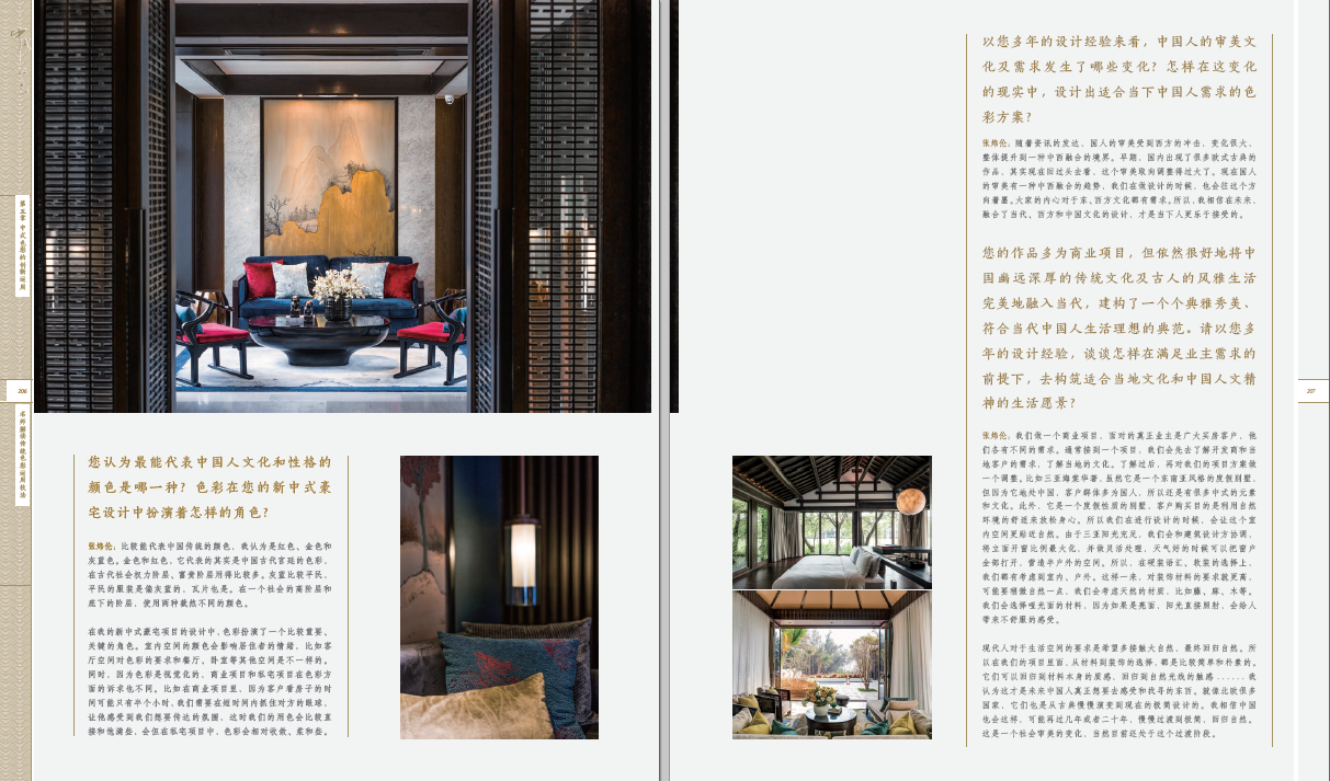书中在阐述理论的同时,还荟萃了数十个唯美的中式家居色彩案例,从配色灵感到分区空间分析,细数色彩搭配技巧,体现出一股时尚的复古潮流。并且集合了几位家装名师对设计创意进行深入解读,以与众不同的表现方式解答传统色彩运用的方法与规律,并指出现代中式家居设计的发展方向。