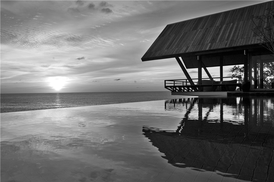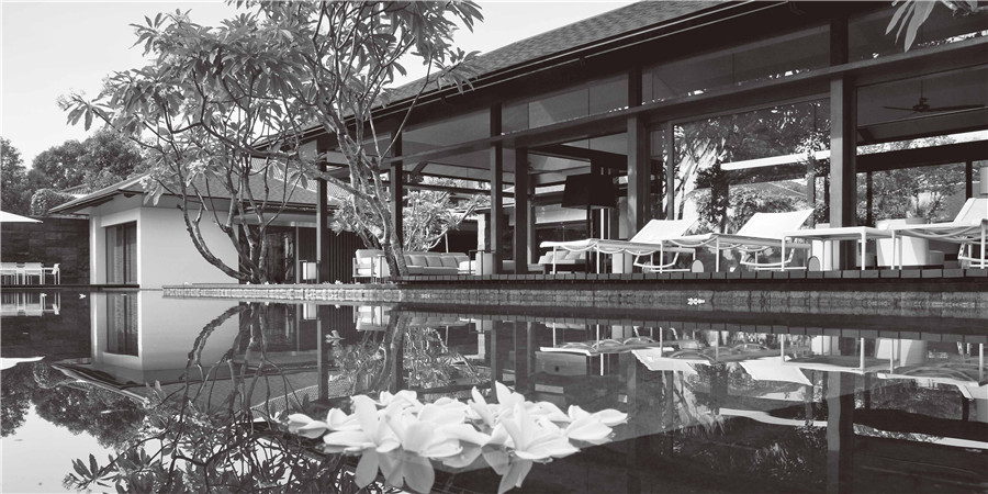 达曼海悬崖边上。我们的视觉焦点在于这些别墅独特的屋顶形式,以及这些屋顶对泰国文化背景的体现。位于新加坡纳森路的住宅展现出私人性质与公共性质的二元性。在这里,娱乐空间和私人生活空间实际上被分割成两栋独立的建筑,隔街相对。两栋建筑的建筑语言、规划和空间表现形式就像两位具有鲜明特征的兄妹。相比之下,位于印度尼西亚首都雅加达以南的武吉高尔夫乌塔玛别墅的主题是水资源的利用。鱼塘和游泳池等水景引领着游客开启神奇的体验之旅,使他们