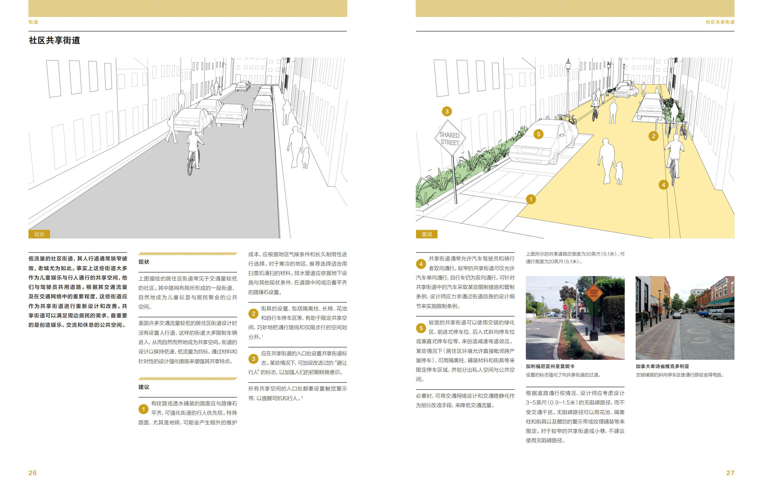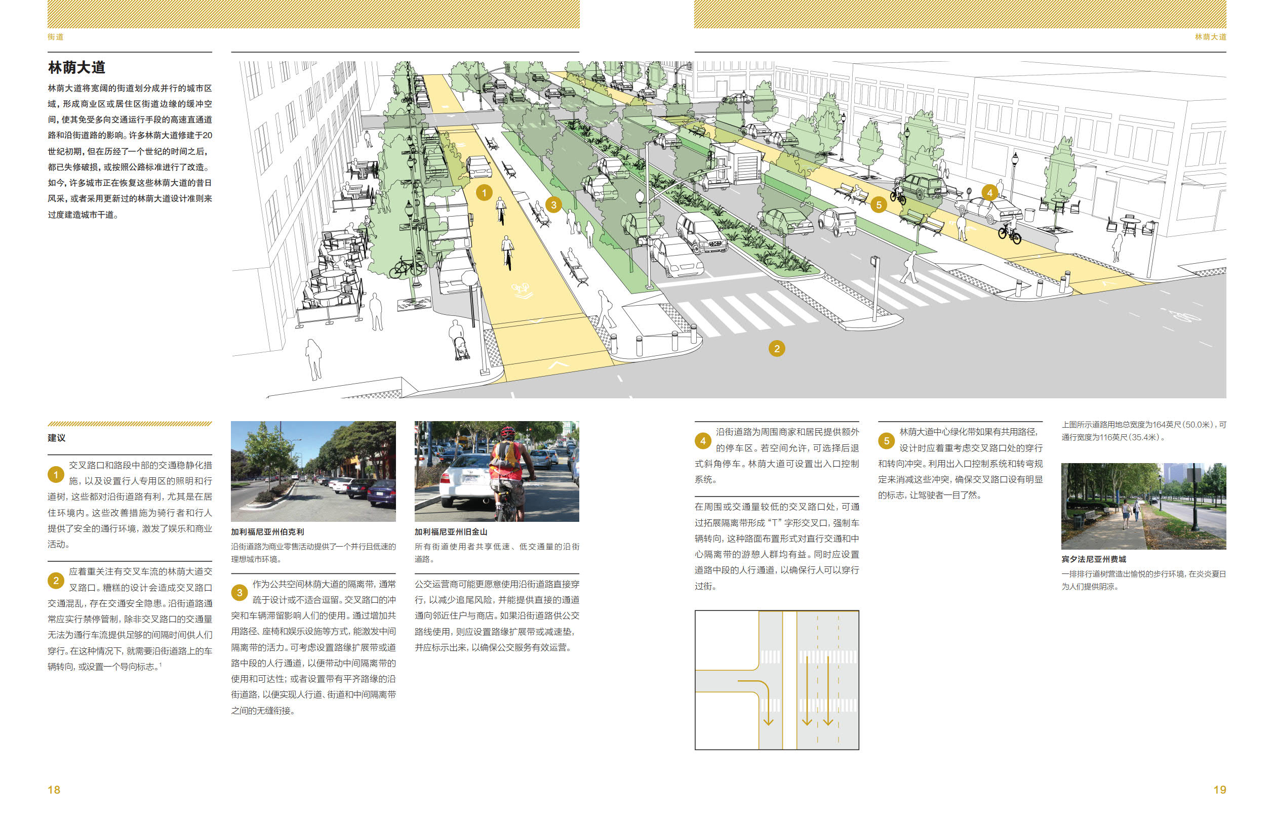 3. 《城市街道设计指南》侧重于城市街道和公共空间的设计。强调城市街道设计是一种独特的实践,具有自己的一套设计目标 、参数和工具,以围绕城市环境的特殊特征展开设计。