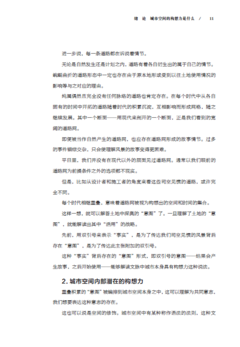 无论在看似多么杂乱无章的城市空间中,其场所都存在固有的空间语法。随着大部分人在与城市发生关联的过程当中,解读这种语法只会变得更困难。如果更加深入探索城市空间的话,还会发现其中存在通过这种语法去表现的、应该被称作空间“意图”的诸多事物。通过解读城市空间具备的这种构想力,能够预判今后城市的样貌。