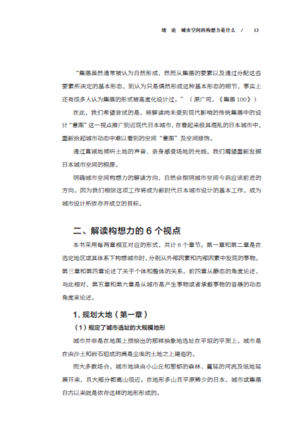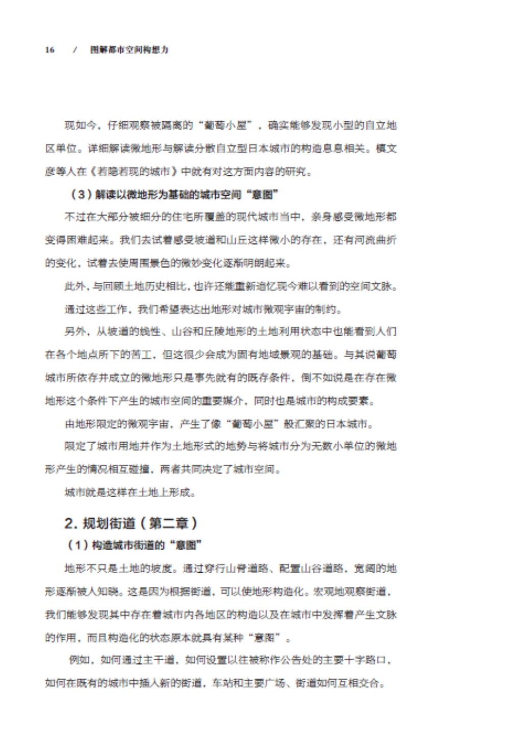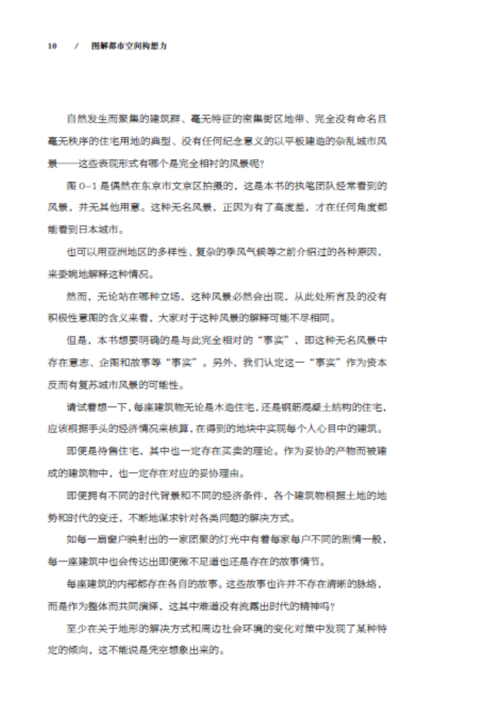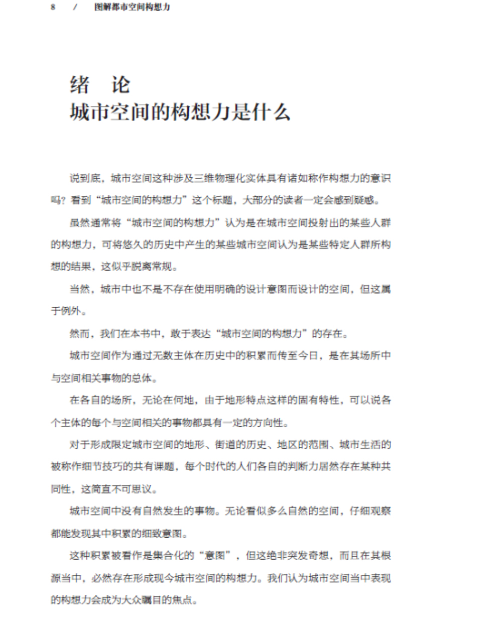 本书是由东京大学教授西村幸夫率领的东京大学都市设计研究室的中岛直人、永濑节治。中岛伸、野原卓、窪田亚矢、阿部大辅6位教授,耗时10年总结出来的关于城市空间规划和设计理念的图书。通过“规划大地”“ 规划街道”“ 依存于细节”“统一整体”“推动万物”“印刻时间印记”六个视角详细解读都市空间的构想力,为现代城市规划师提供借鉴。