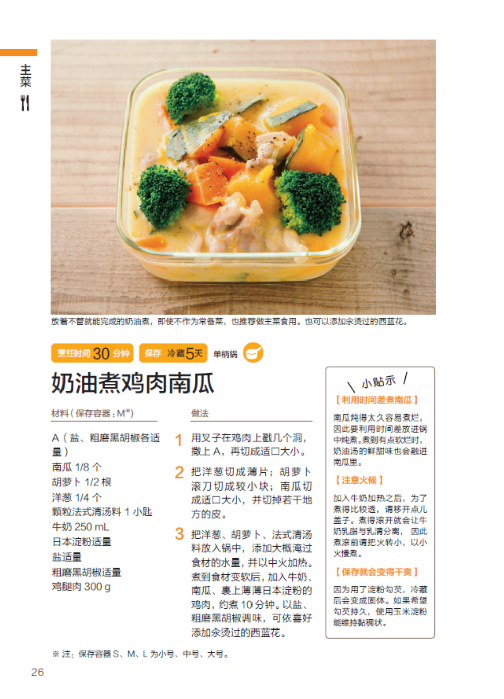 奶油煮鸡肉南瓜… ………………………… 26