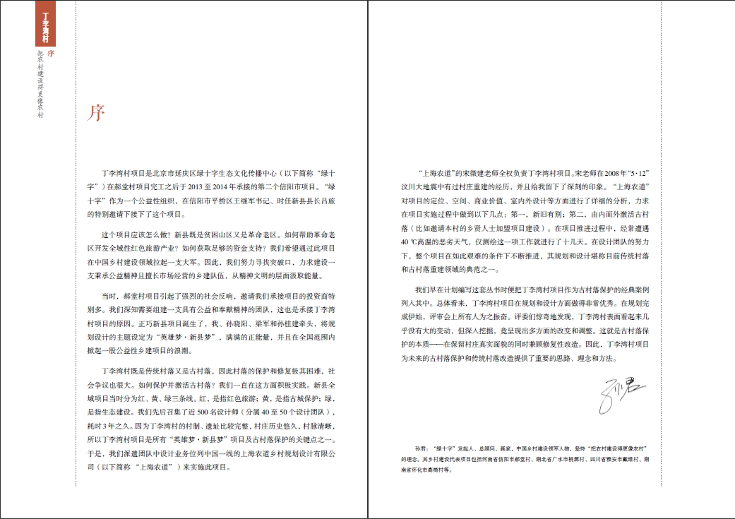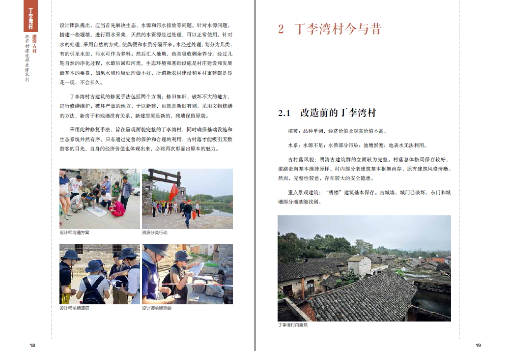 本书以河南省信阳市新县丁李湾的项目为典型,通过手稿、照片、设计图、访谈等原始资料全面还原项目的真实面貌及建设的全过程。侧重展示了设计师在古村落项目中采用先激活后保护的手法,尽可能保留古村落原貌的建设方式。设计团队“上海农道”在项目前期调研所整理的“调研内容树状图”可为乡建设计师提供不可多得的参考范例。