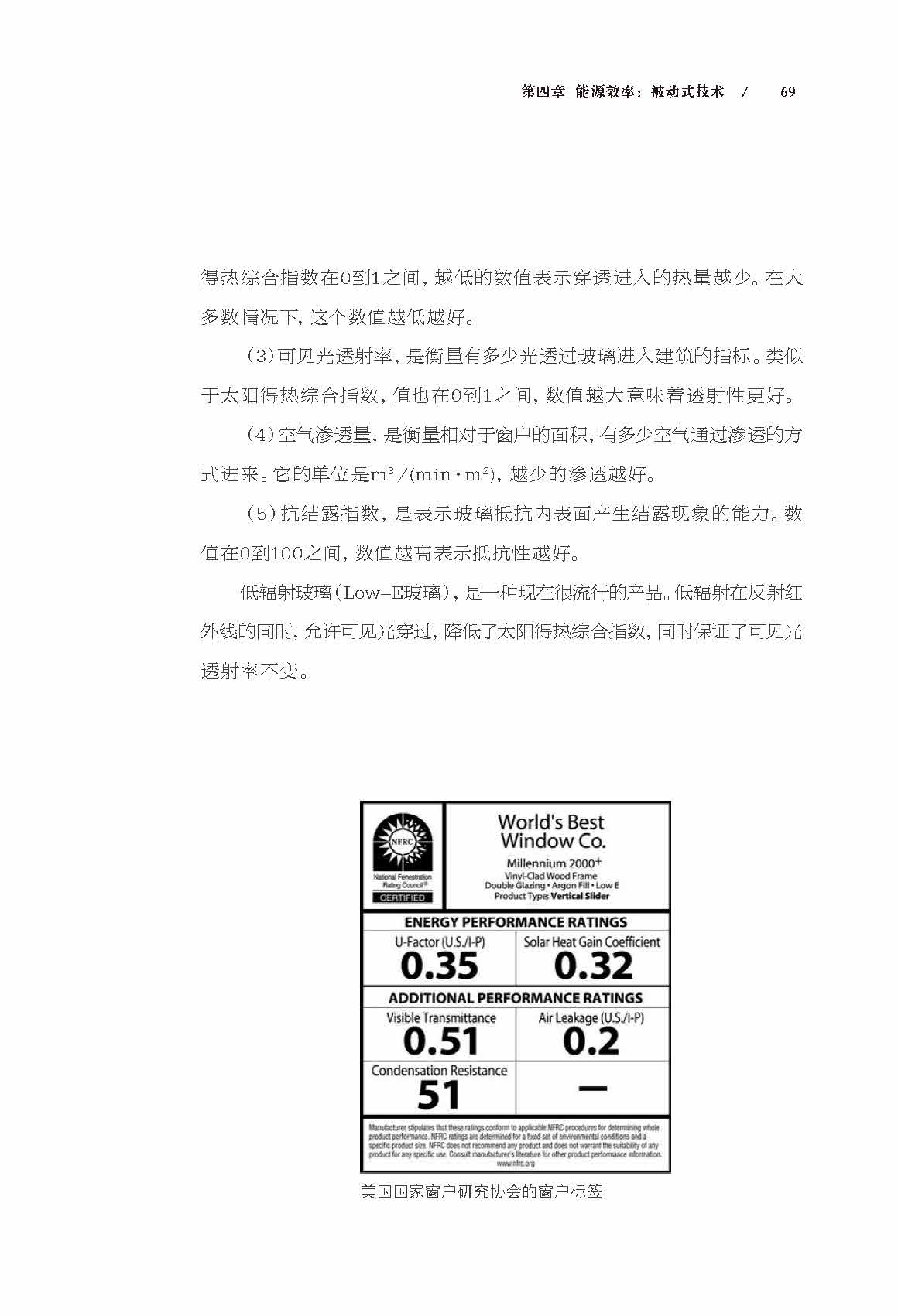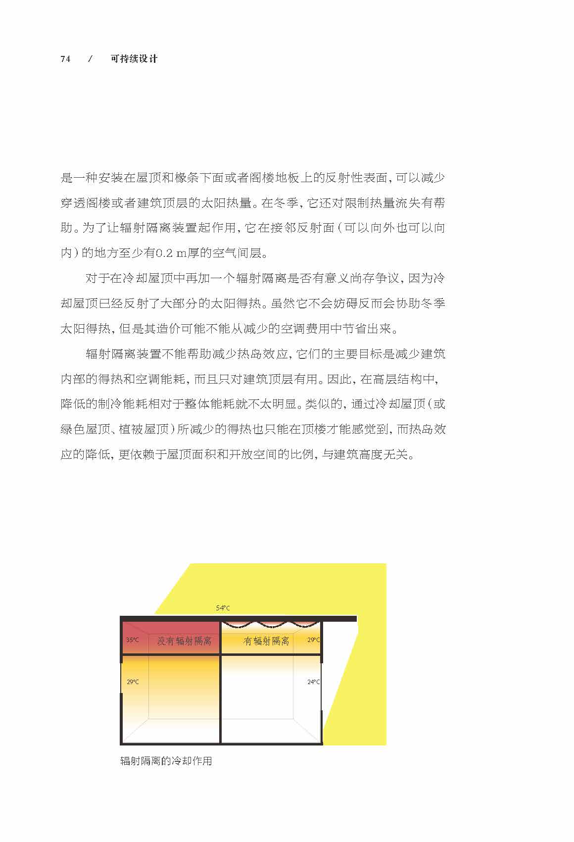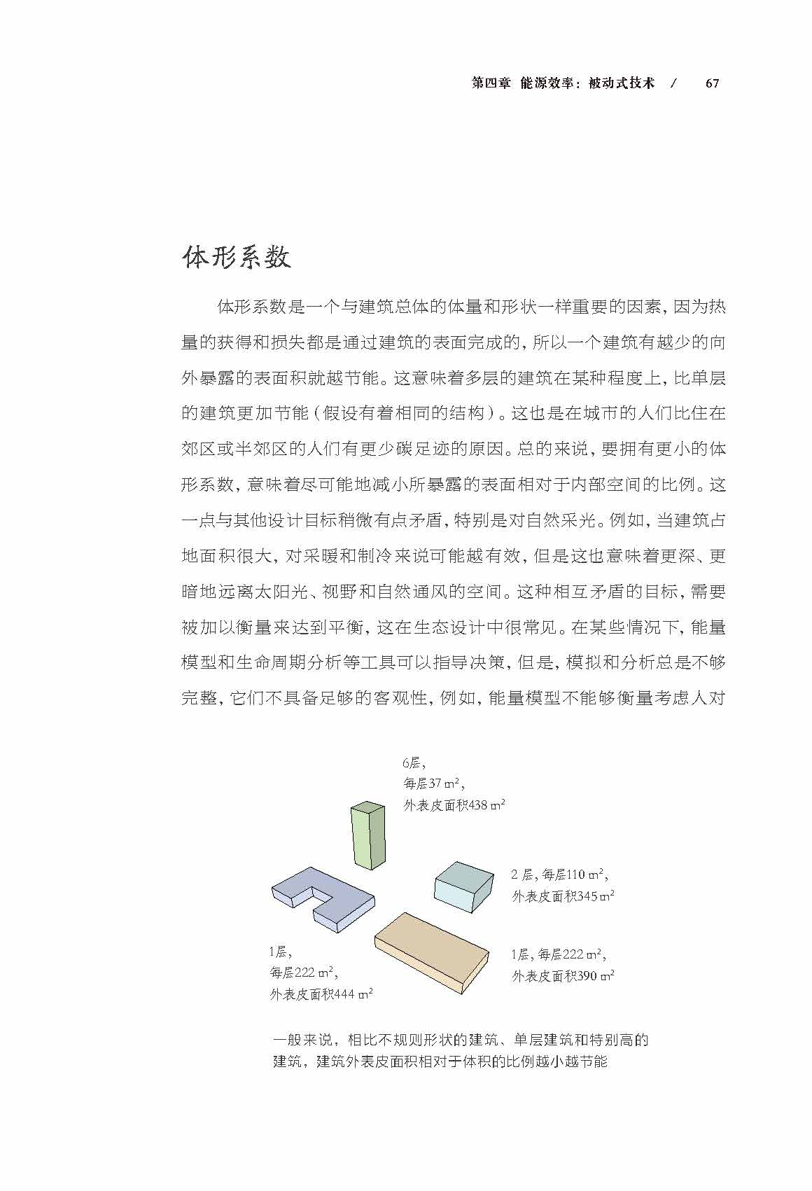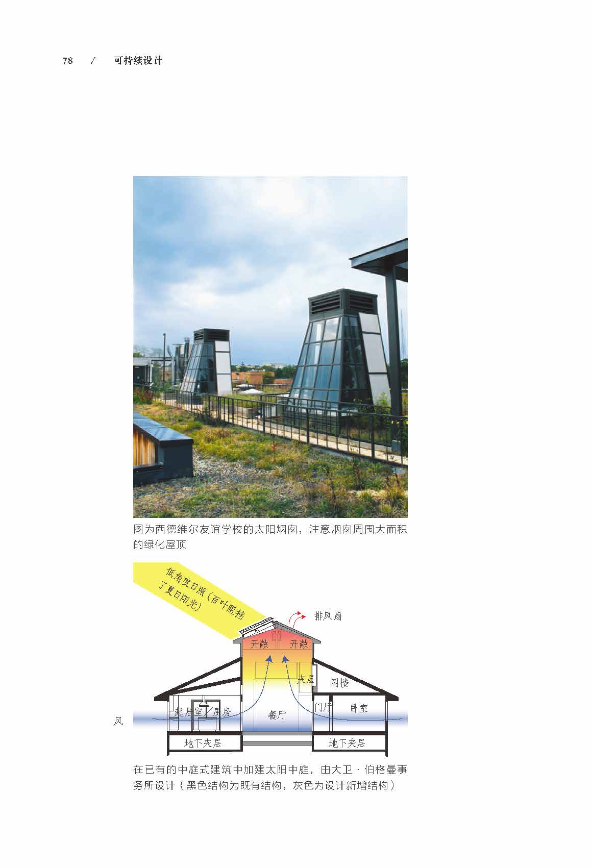 还有一些关于最佳解决措施的讨论。在这些例子中,可能没有唯一的答案,但是书中列出了各种观点和它们的优势、劣势。这些观点也一直在进化。随着我们在可持续设计领域经验的增长,知识也被颠覆着。今天的高科技解决方案还包含一些有待解决的问题,如“室内环境质量”一章中关于集约型建筑的讨论就是一个经典的例子。