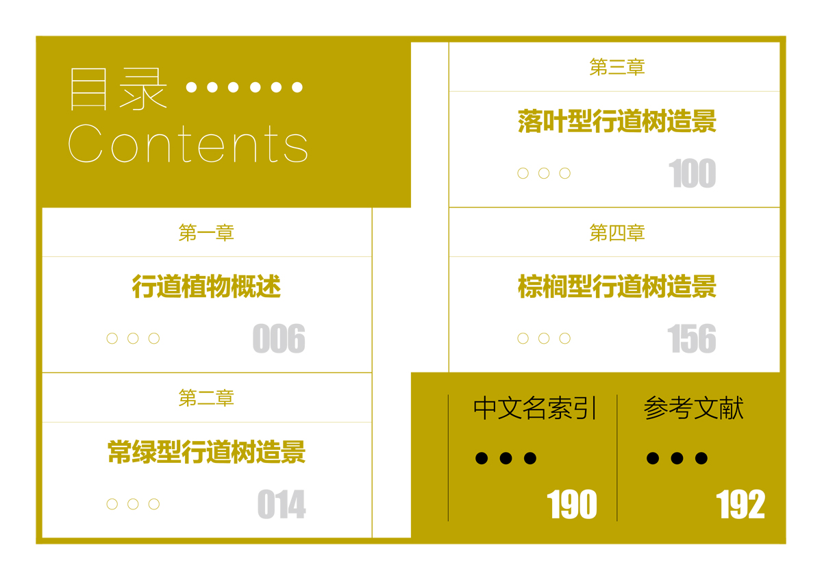 《行道植物景观》按植物的特性和景观功能分类,分为常绿型行道树造景、落叶型行道树造景、棕榈型行道树造景,方便园林从业人员在实际应用中参考借鉴。