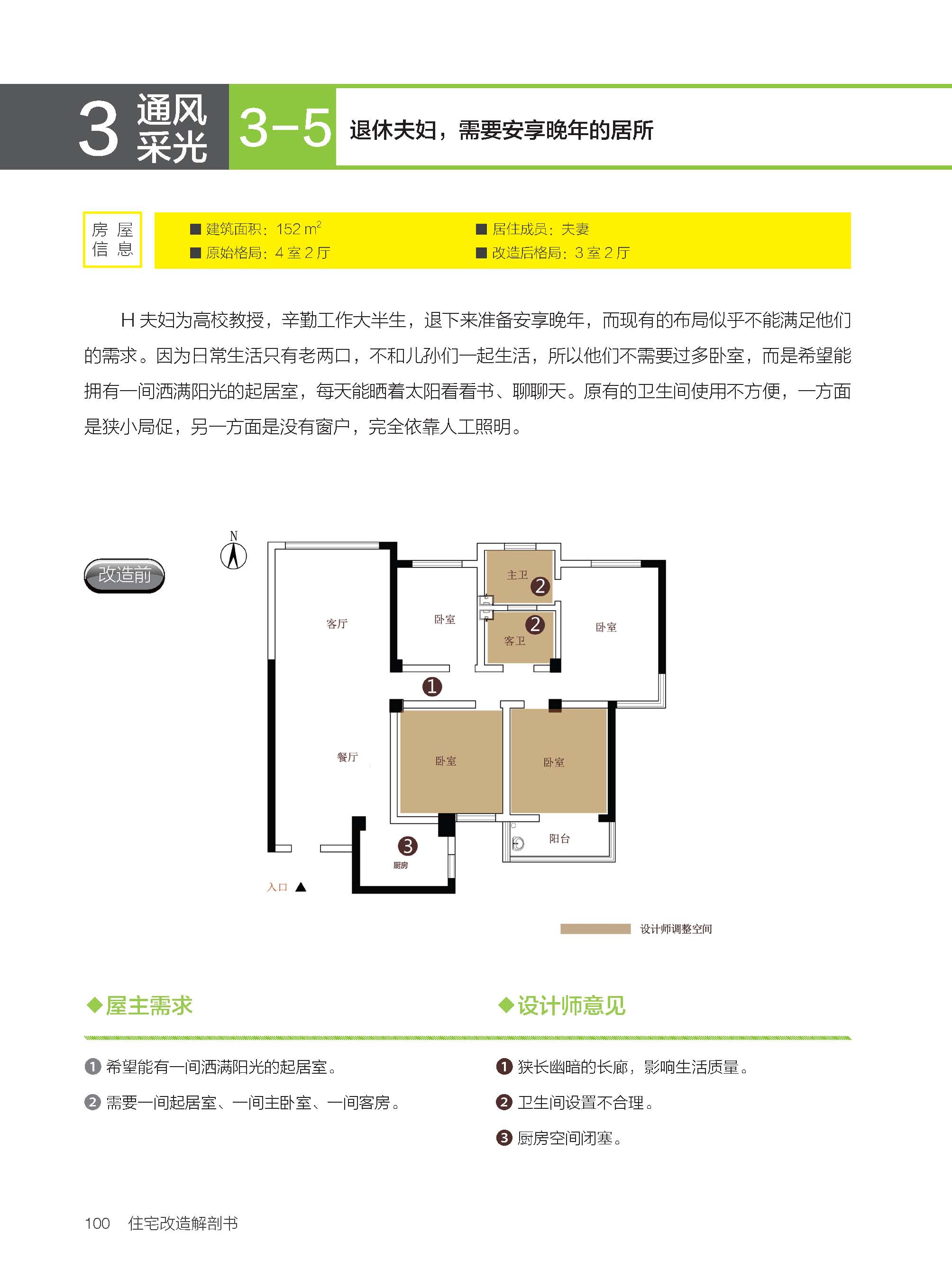 了解自己想要的,如何跟设计师沟通,并通过沟通得到设计师更多更好更专业的建议并不是每个业主都能做到的,而这时,多看、多听、多收集相关情况就成了业主必做的功课。此时,你需要一本户型改造的是实例书来参考。