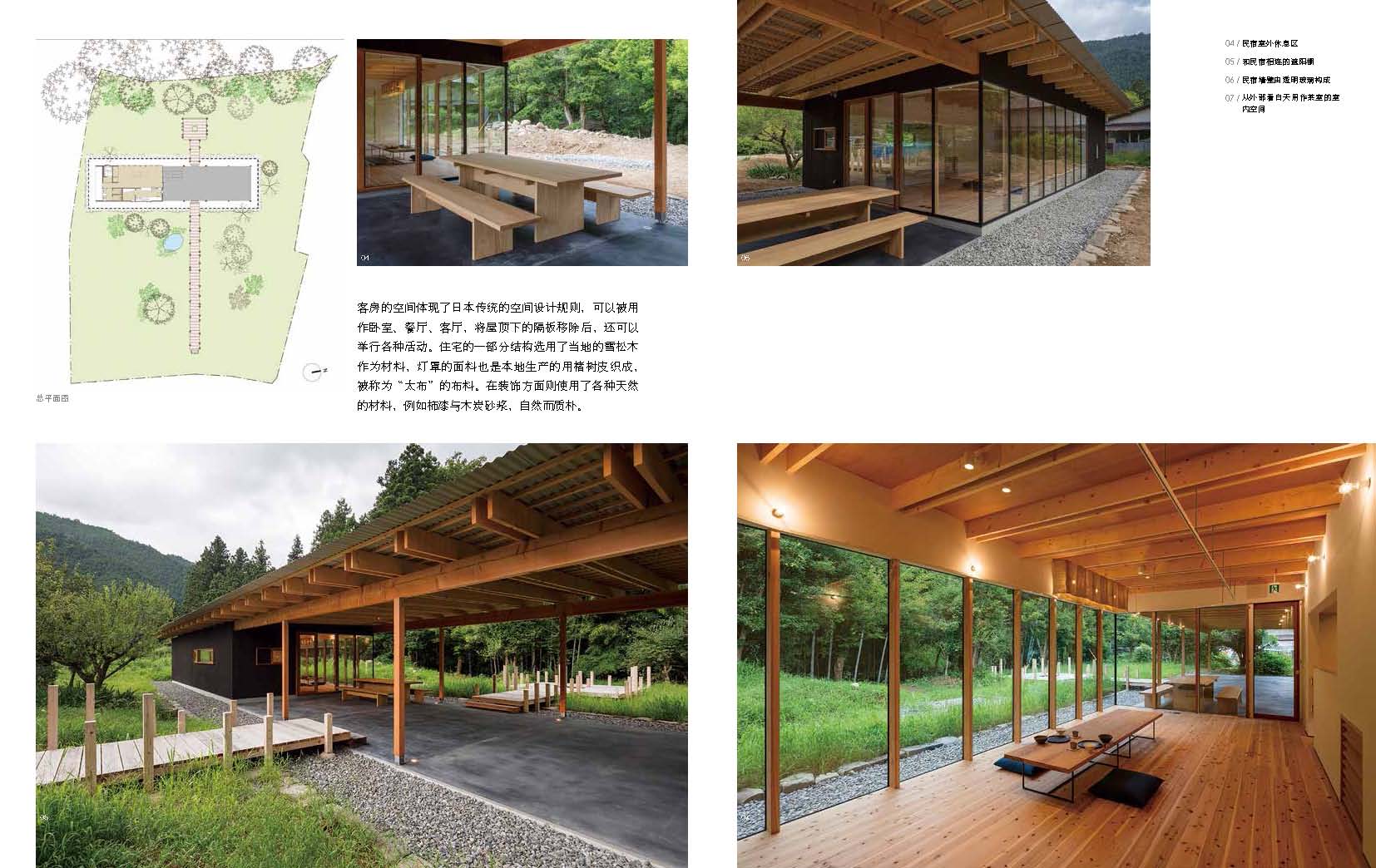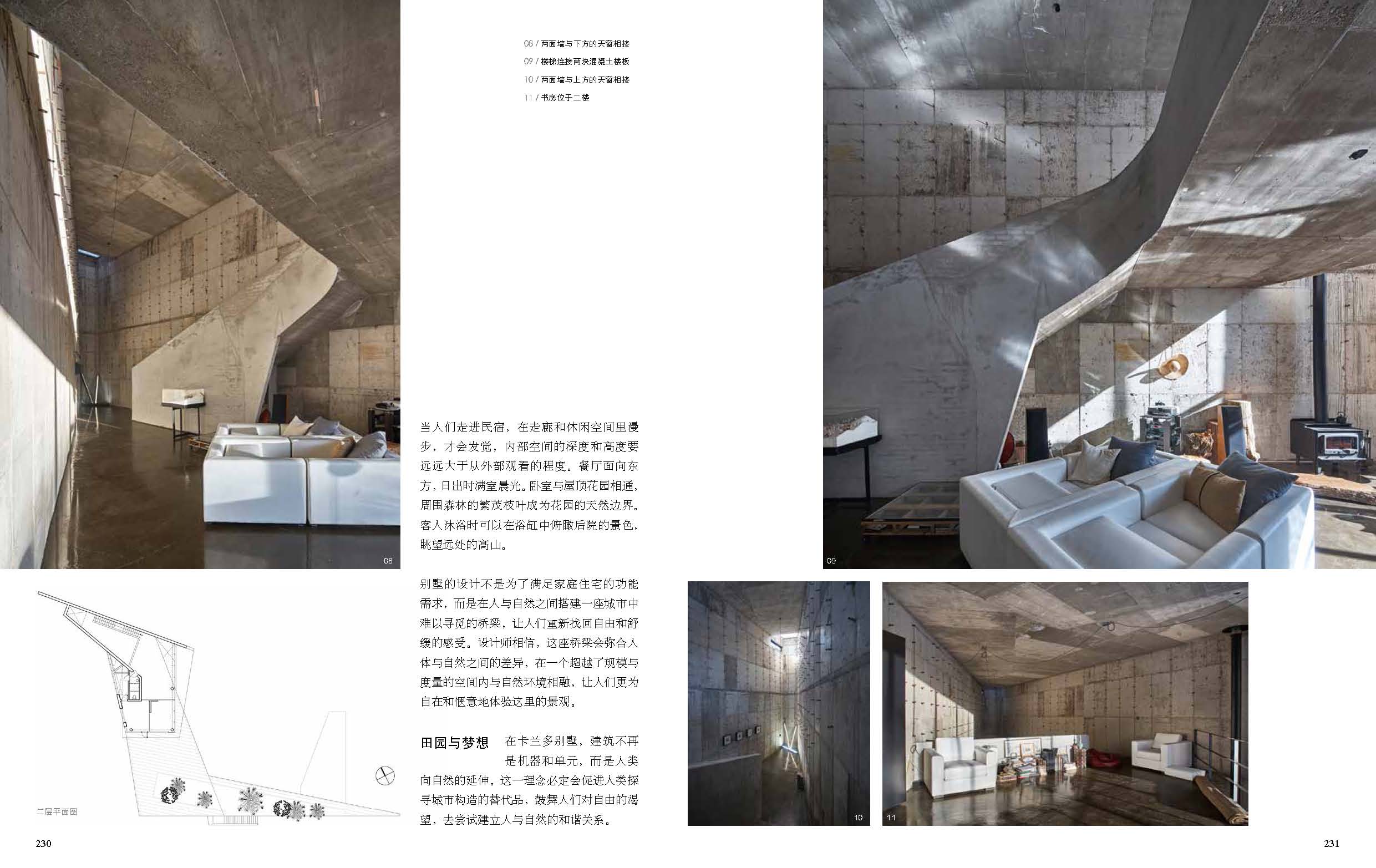 《乡村民宿》精选全球范围内38个案例,侧重解析建筑设计等技术性方面的内容。书中每一个案例既有实景图片和设计图纸的展示,也有详细的文字分析,为读者展现了乡村民宿的别样魅力。希望本书通过展示图片、设计图纸以及详细的文字解析,可以让读者更好地了解乡村、了解民宿,同时为民宿设计师及相关从业者提供参考。