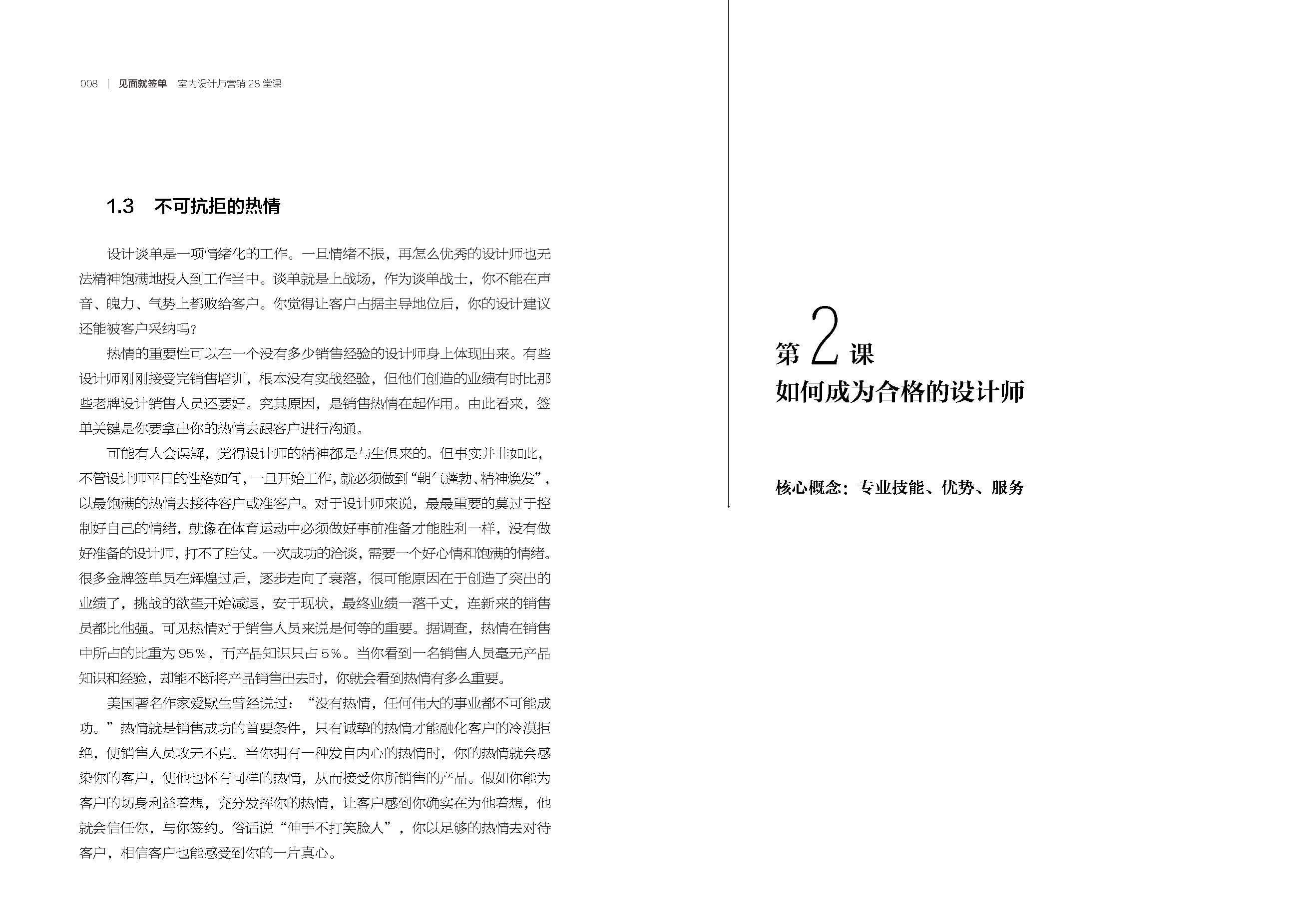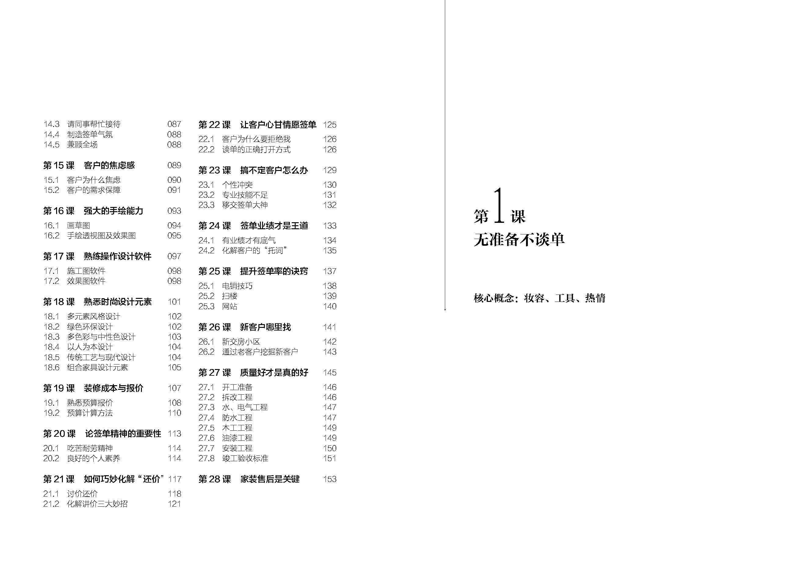 本书从设计师谈单的准备工作、谈单中会出现的问题,以及签单后如何维护客户等方面做了十分细致的讲解,帮助设计师完成从小白到签单大神的过渡。