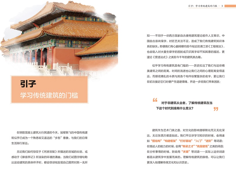 本书没有落于介绍具体建筑的窠臼,而是从大处着眼,从传统建筑的建造逻辑入手,巧妙地分析了古人为什么这样建造的原因,并详细解释了建筑随技术发展而出现的变化,让读者在理解了传统建筑内部构造的同时,深深叹服于中国古人的智慧。正如作者在前言中所说,希望大众在关注中国传统建筑时,不仅是因为“传统”,更因为其中所蕴含的那些能够超越时代的建造的智慧与设计的质量。