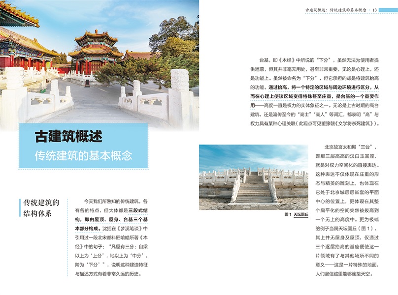 本书讲述了中国传统建筑的结构体系、制造技巧和风格沿变等内容,分别从传统建筑的基本概念、发展历程、破译密码、视听设计、新生可能和设计启示等角度入手,具体讲解了传统建筑的构造处理、空间设计的层次感以及听觉设计等,回顾并分析了中国传统建筑的发展,特别是技术进步带来的变化,解构现当代建筑与传统建筑在风格、技术等方面的关联,分析了中国现当代建筑对古建筑的传承与发展,并展望了传统建筑的技艺在未来应用的前景。