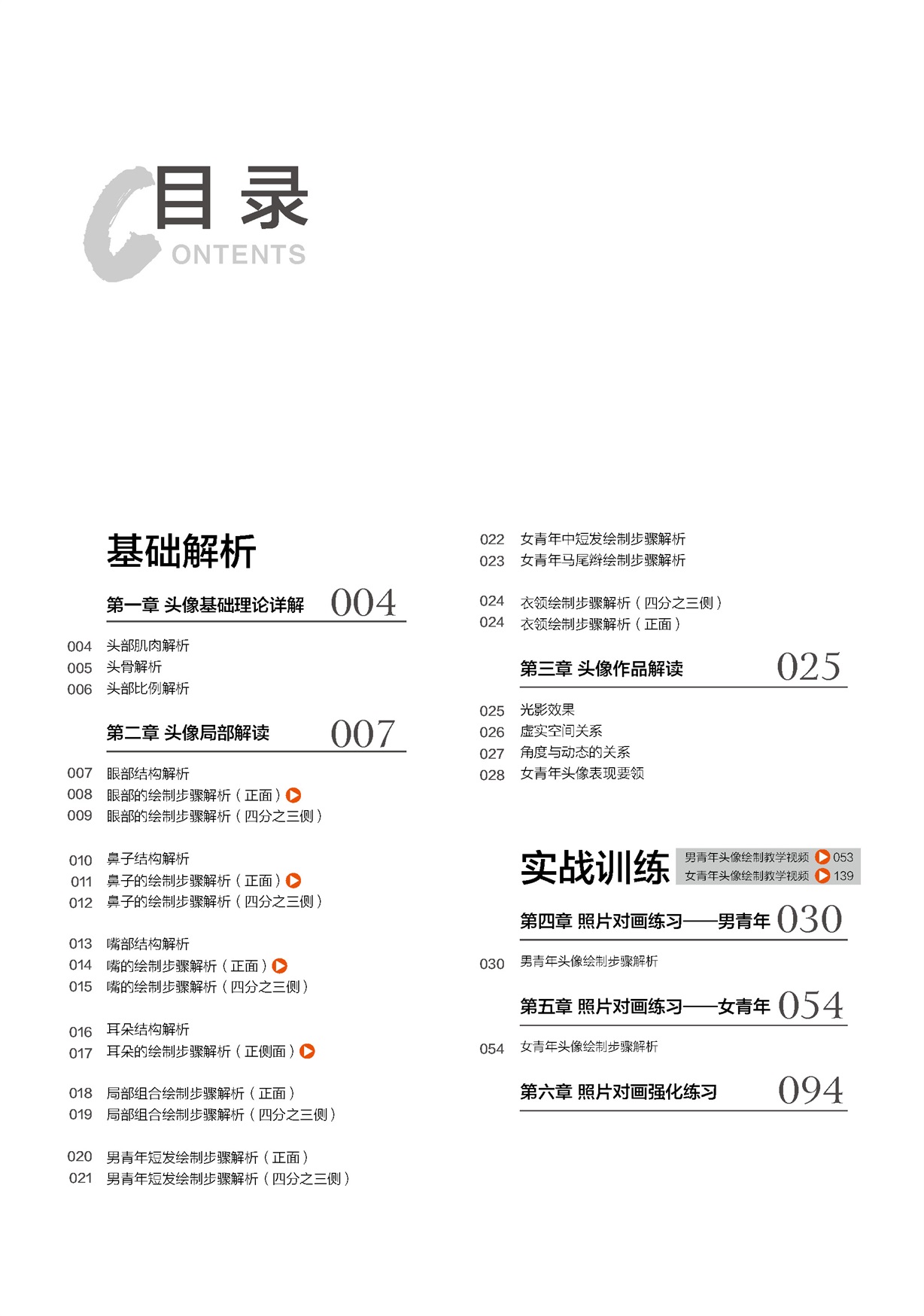 重点课程赠送同步教学视频,包含五官分解与整体头像,实战技法更直观。
