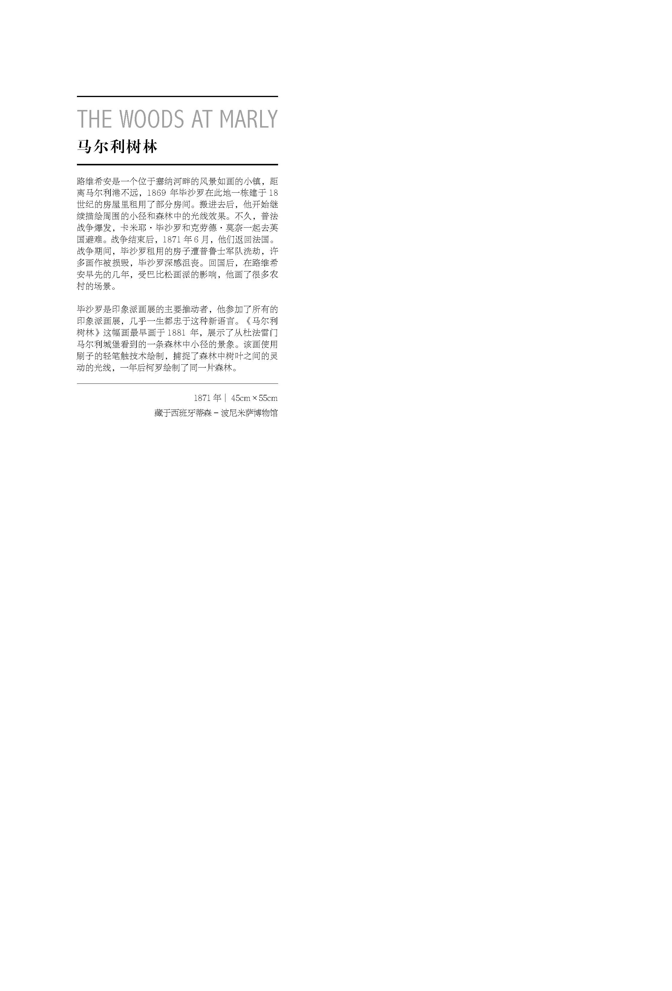 本系列画帖以西方大师经典画作为内容,主要以临摹、赏饰为主,按艺术家分册。每册32张精选大师代表作。深入考虑国内读者需求和审美习惯,规避不良题材和消极内容,每册作品精挑细选。每张作品辅以作者及作品扼要讲解、说明,并附原作规格尺寸,使读者能够更加深入地了解作者及原作,帮助读者更准确地理解作品,从而做到在理解的前提下欣赏,和更有目的地临摹学习。本册为卡米耶•毕沙罗作品,一本包括毕沙罗32幅珍贵画作,《红屋顶》《收获》《蒙马特大道的多云早晨》……活页散装、方便临习,高清印刷、原作比例,是教学对话,装饰的不二之选。