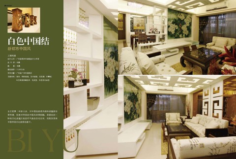 根据业主的要求和喜好,设计者在本案中提出了以明亮的白色为主基调,以白色的中国结为主题。整