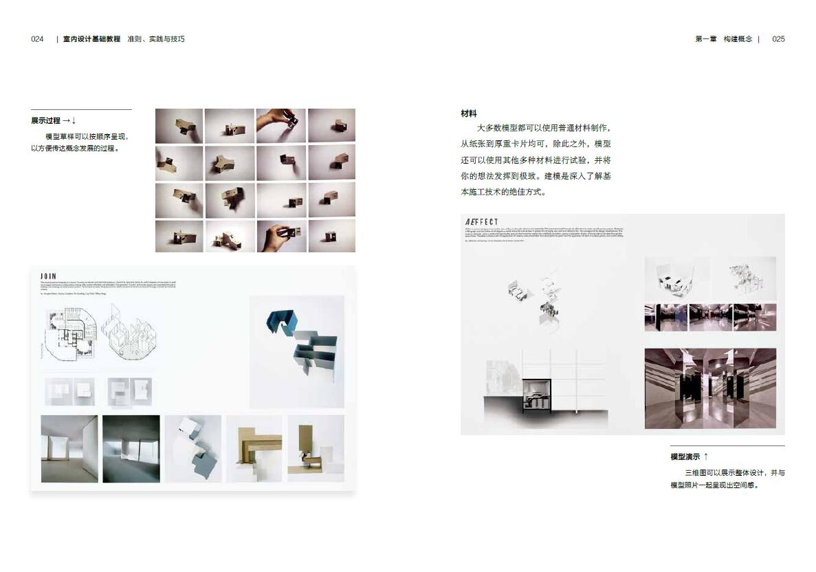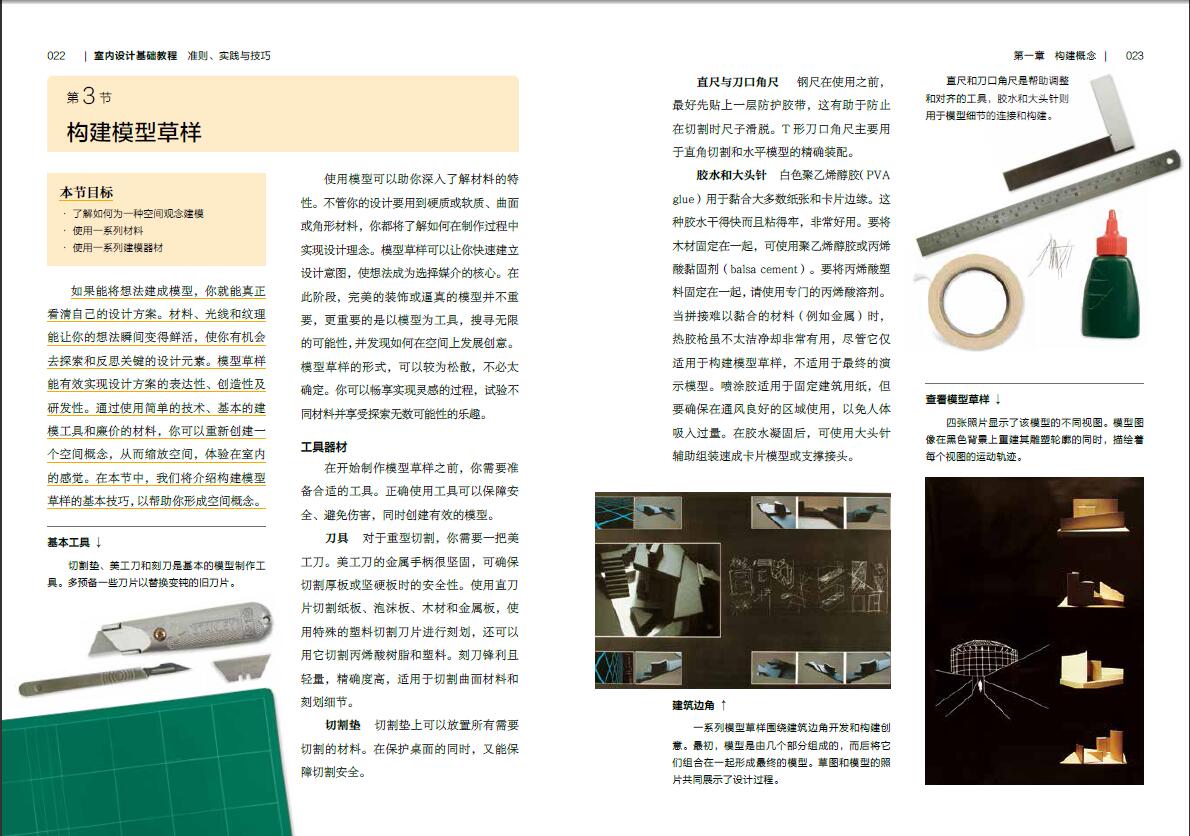 如果你是一名设计专业的学生,那么翻开本书就像翻开一本标准意义上的教材。这本书从设计基本功讲起,教你如何构思、如何用笔画出想法,用常见的材料以及软件辅助做出模型,之后便进阶到设计项目,将客户的想法落地是这阶段的重中之重,而与客户沟通便要借助概念版与模型草样以及设计师良好的表达能力。在项目施工阶段,结构性与非结构性设计关乎建筑组件、材料、水电气施工、照明、室内配色等方方面面。最后,本书专辟一章,教授“准设计师”们如何建立自己的职业档案,为求职、签单做好充足的准备。