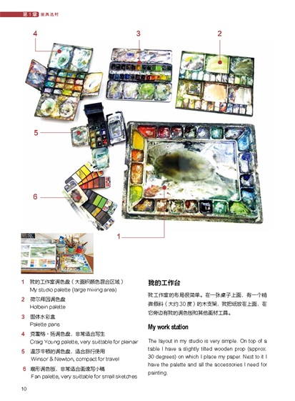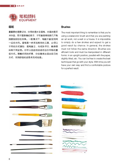 2.书中包含7种必学水彩语汇、7类专业画法的技巧,5步初学技法、6堂步骤示范课,