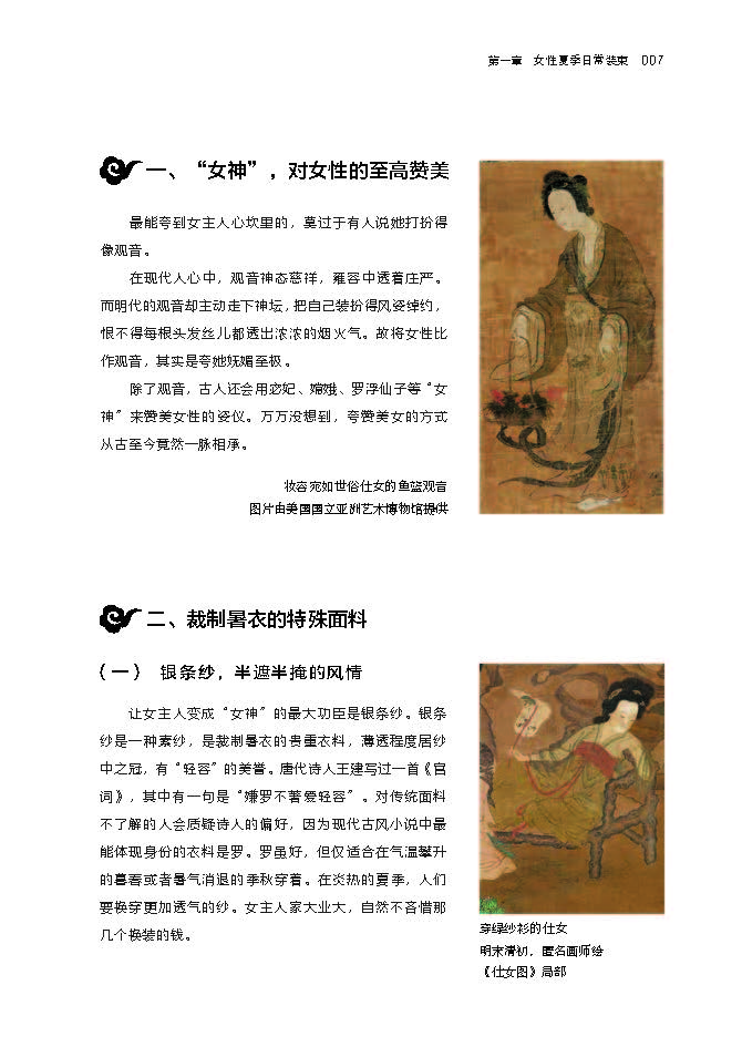 在书中你还可以发现很多有意思的小点,例如古代的高跟鞋、拖鞋是什么样子的,原来过去赞美女性也是用“女神”,主随客便的官场礼仪,兼具声音的首饰“闹嚷嚷”,穿藕荷色衣衫的时尚老人,讲究穿搭的精神世界的旅游“卧游”,叛逆的流行“男穿女装”等等,在了解服饰之余也为读者带来一幅活色生香的古人真实生活画卷。