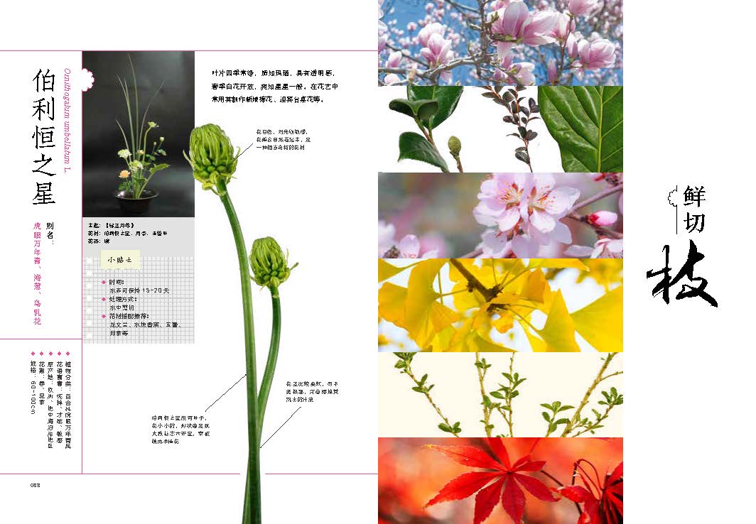 作为一本实用的插花素材工具书,本书从鲜切花、鲜切叶、鲜切果和鲜切枝四个方面进行了详细讲述,除花名(别名)、花语、尺寸、插花养护要点、花材搭配推荐外,也有实例作品的立体化展示,通俗易懂,一看就会。花艺之美,从学习花材开始。
