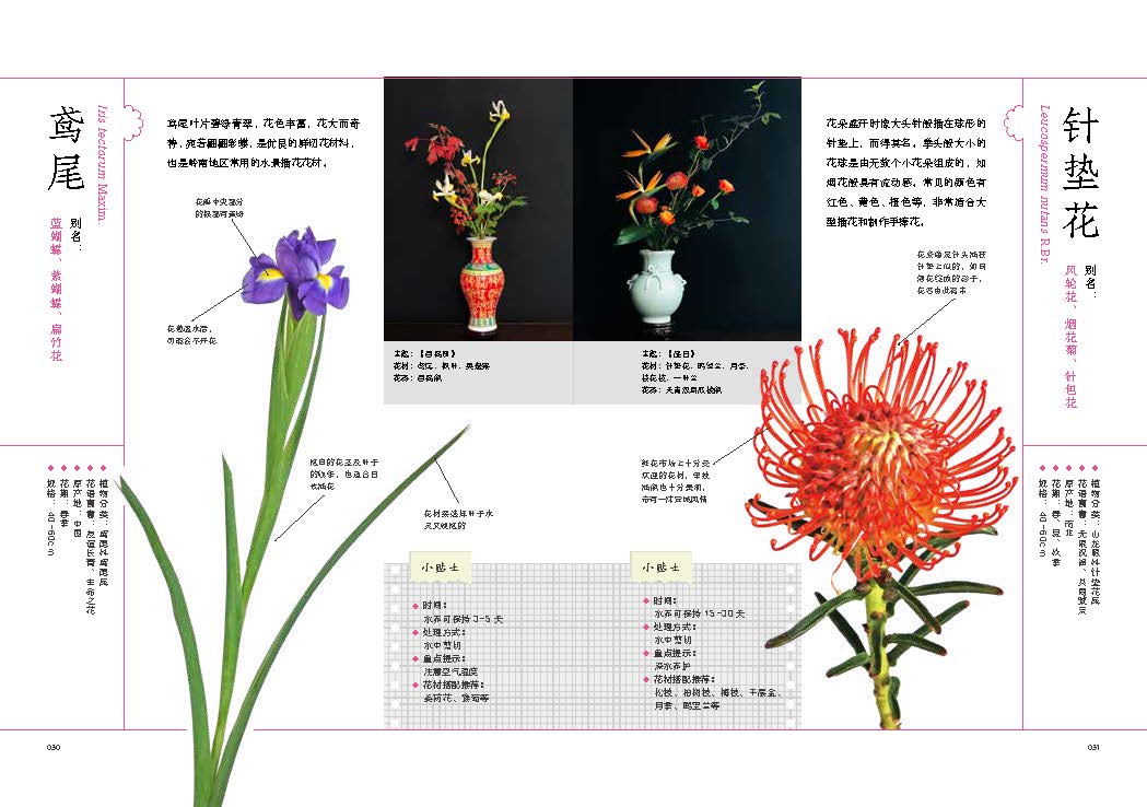 本书收集了市面上较具人气的常见花材,南北地区兼顾,按插花的实用功能分为鲜切花、鲜切叶、鲜切果和鲜切枝四类。每种花材除了花名、基本特性、寓意、尺寸、观赏期等基本信息外,还特别介绍了一些养护要点和实用的花材搭配技巧,并以图解的方式展示出来,通俗易懂,参考性强。