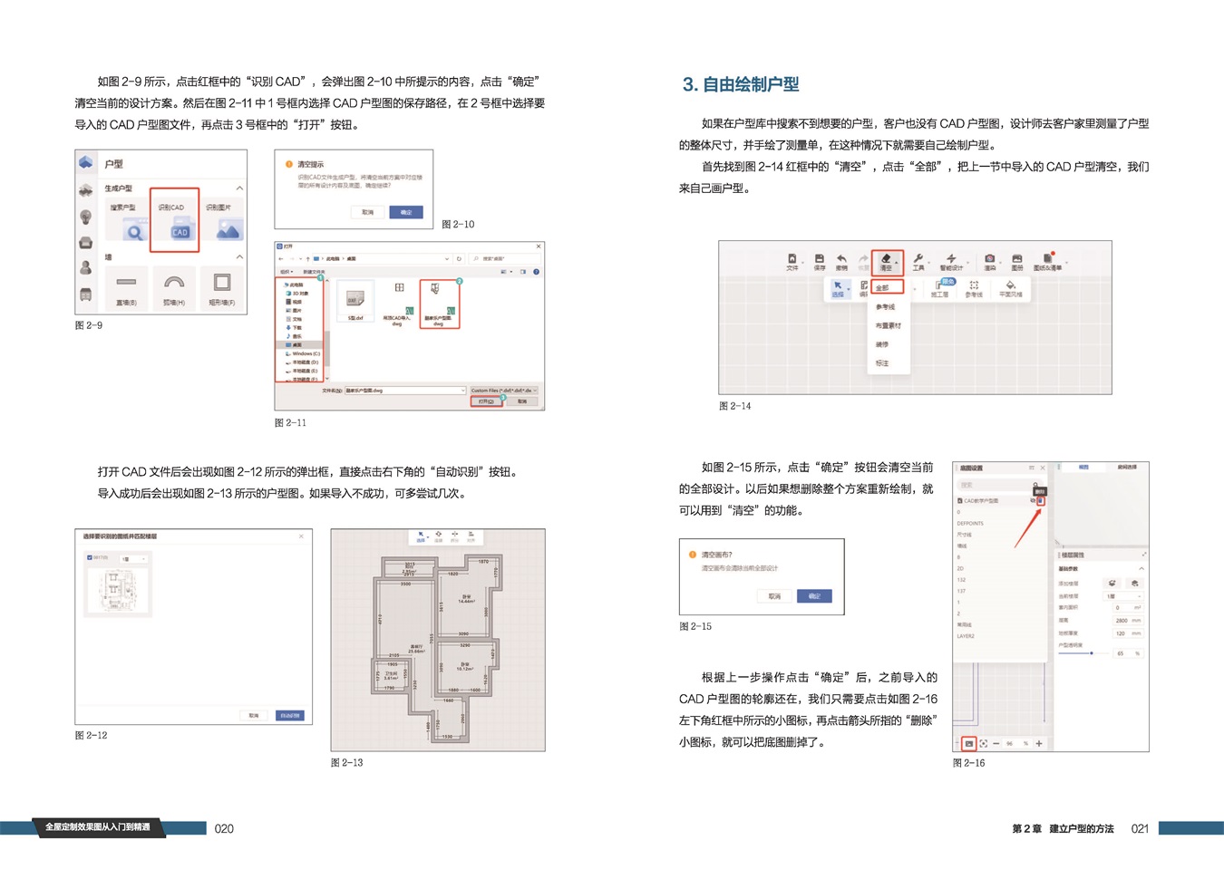 针对关键节点设立章节详细解析,其中包括定制橱柜设计、手动灯光的添加、洗衣机柜的设计布置、榻榻米衣柜书桌组合、3D全屋漫游等。一步一图,读者可以边学边做,快速掌握。