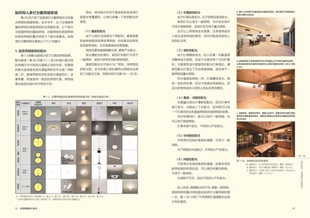 如何导入多灯分散照明系统丨1. 选择照明器具的配光 / 2. 需注意的室内装修材料的颜色和质地 / 3. 选择不产生眩光的灯具及其安装方法