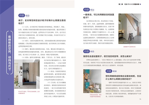 ★从七大方面讲解收纳柜的130个常见问题,包括收纳柜的风格与形式,收纳柜的空间、动线与尺寸,收纳柜的定制,收纳柜的尺寸,柜门的造型与变化,收纳柜的工艺与价ge,收纳柜的五金与配件。