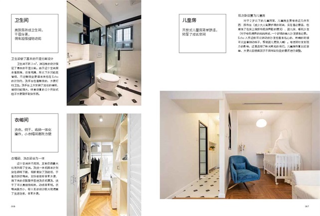 书中她展示了自己设计的12个小户型案例,首先就是她自己的小家,设计这个小家的时候,她的宝宝还不足一岁,房间内的细节处处都透露着一个宝妈的小心思。舒适的椅子适合宝妈哺乳,打通的次卧方便照看婴儿,次卧和客厅联通的大空间,适合孩子活动。方便孩子的同时,年轻夫妇的生活品质并没有下降。采光通透的主卧、阳台上的浴缸、独立的衣帽间、造型优美的餐椅,处处彰显着设计师不凡的品味。其余11个案例,每个都是设计师根据业主的特点量身打造的,仔细研读这些案例,读者都很有受益。每个案例后面的小贴士非常实用,是打造自己小家的实用技巧。