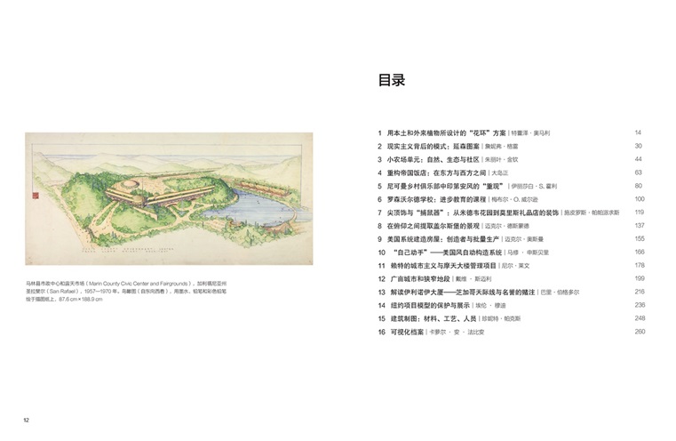 本书共有五个专题,从“自然”“文化”“建造”“城市规划”以及“赖特档案”五个方面对赖特的建筑理念、建造方式以及民主理想进行解读,涉及众多赖特的知名项目,包括流水别墅、古根海姆博物馆;以及未建成的规划,如小农市场、广亩城市等。许多图纸还是初次公开,具有很高的学术价值。