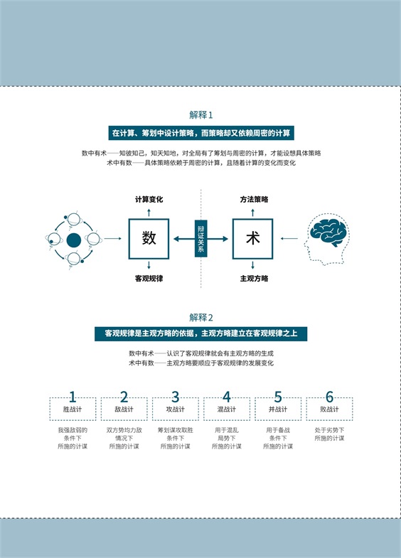 《三十六计》,或称《三十六策》,是一部兵法奇书,语源于南北朝,成书于明清。记载了三十六条兵法计谋。本书是基于《三十六计》原著上,进行视觉语言翻译给读者,辅助读者延长记忆的时间,便于读者去理解。书中每个章节主要包含:原文、译文、启示、总结、思维模型和规避之道这几个部分组成,将艰涩的古代语言简洁化、可视化,易懂、易记、易用。以精简清晰的视觉解读,来提炼核心思想,有助于读者快速入门,从而启迪智慧,提升认知。