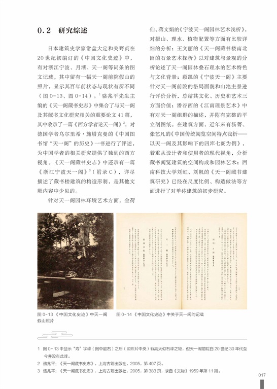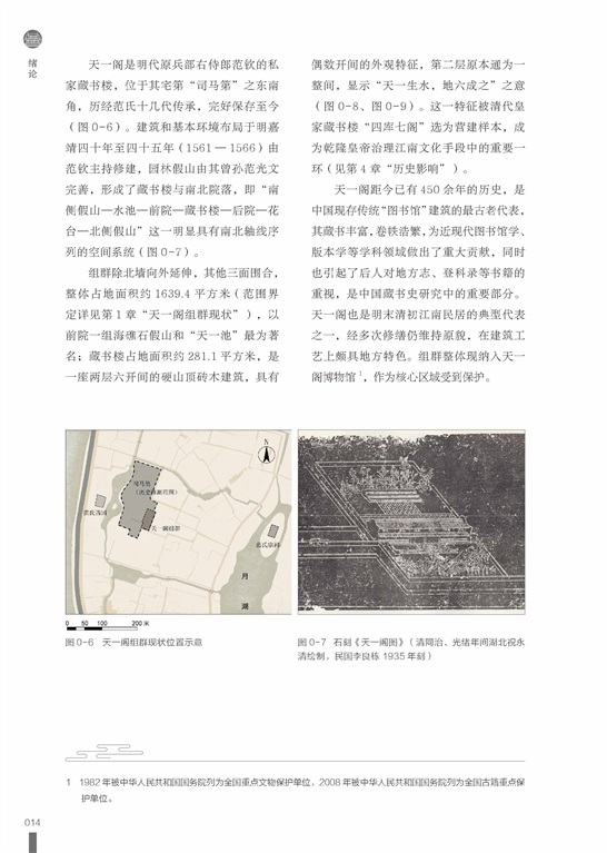 本书以完整的调查测绘为基础工作,从历史背景、社会影响等方面入手,补充已有研究,探讨范氏司马第与藏书楼的原始环境关系,并尝试对其进行复原性探究;在天一阁的单体研究中,对其建筑空间特色,功能分布以及其工程做法进行研究分析,真实反映天一阁在历史中的生命力和传承性;在园林环境艺术研究中,解析明代微缩山水的景观组织和艺术特色,挖掘明末清初的人文思想在造园活动中的反映;总结范氏藏书能够流传至今的因素,并提炼其成为众多藏书楼建筑模仿范本的特色做法。