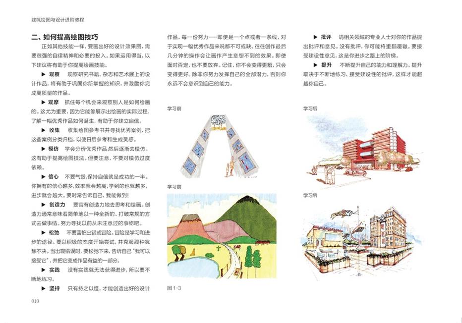3. 书中展示案例大多来自学生习作和工作室作品,可以进一步方便读者了解绘图的全部过程,对比自己的作品,增进信心,及时发现问题。