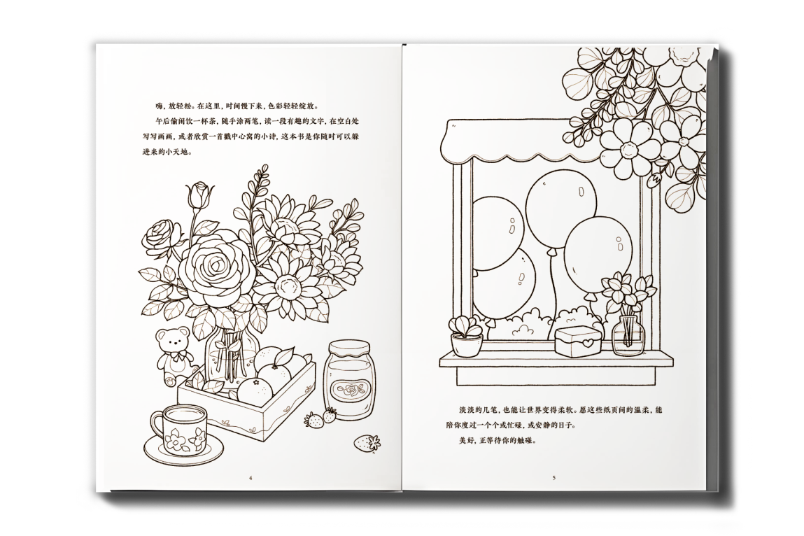 治愈线稿提供视觉秩序,名家美文在行间低语,留白手账区让情绪自由着陆,一页之内,理性与感性同时被照顾。30分钟~1小时即可完成一幅作品的设计,让通勤、午休等碎片时间转化为沉浸式疗愈体验。