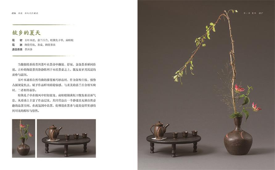 全书内容含括茶花的特点和美学特征、茶道插花的基本原则等,根据春、夏、秋、冬四个季节进行划分,收录了近百个茶席插花的作品。每个作品里面均收录有花材、花器以及设计特点等文字,方便读者在品茶的同时,选择合适的器具,并由此美化我们的生活空间,提升大众的艺术品位。