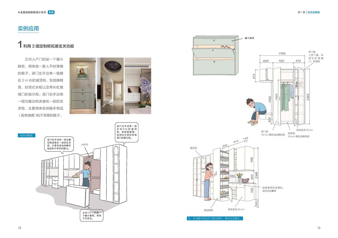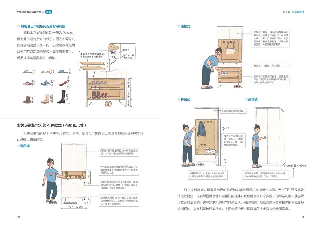 300+手绘插图,轻松活泼,降低理解门槛,玄关、客厅、厨房、餐厅和卧室等空间定制柜设计详解,将定制柜设计与空间属性紧密结合。