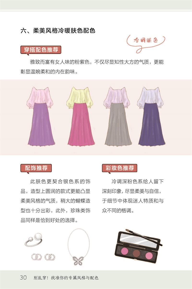二、色彩全适配,配色不踩雷:结合冷暖肤色与四季型色彩,拆解24种风格季型组合配色,职场、日常、正式场合均有专属方案,黄皮显白、黑皮提亮一站式搞定。