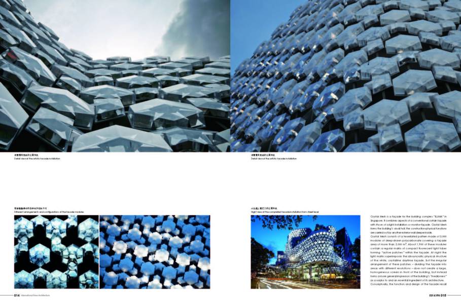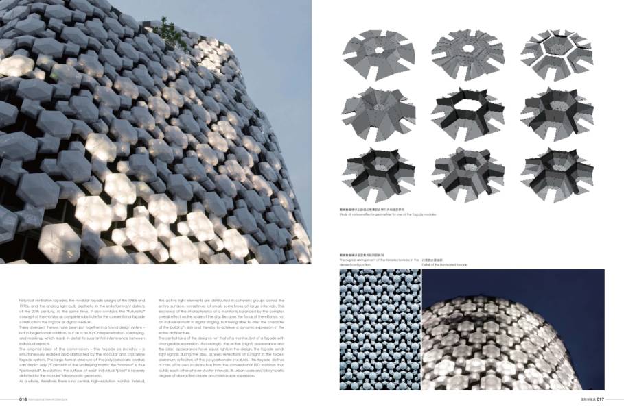 本期专题通过外立面及细部演绎建筑元素的发展变化。外立面不仅可以遮风挡雨,同时还通过其材料、纹理、色彩及结构,彰显各种强大的功能性,带来视觉上的审美,表达地域文化特征。细节反映整体,他们沉淀着建筑材料的发展与建筑技术的精髓。精美的图片辅以详尽的文字介绍,使该书不仅具有趣味性,更具有较强的参考价值。